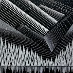 Harnessing lino printing’s even ink application, combined with the choice of a clean monochrome aesthetic, Kristensen fully embraces the limitations of the medium itself, only to defy them. She draws focus to the print process and even the ink and paper, as their respective dark and light restrict her expression to line. Having forfeited all other devices from hue and texture to brushstroke and blending, Kristensen must coax the eye into seeing shadow, depth, perspective (linear and atmospheric) and reflection she has already declared are not there. The viewer is literally imagining these familiar landscapes, though they are as plain to see as the ink and paper. Our view is always coloured by previous experiences and projections; by giving our eyes the bare minimum of information here, Kristensen invites the full measure of our preconceptions, memories, and nostalgic associations for the Canadian Landscape to play into what we see. The specificity of low northern light reflected in contrasting planes of mountain surface indicates a particular location. At the same time, the feeling is of a season, a time of day, a temperature, and a memory, familiar to anyone.