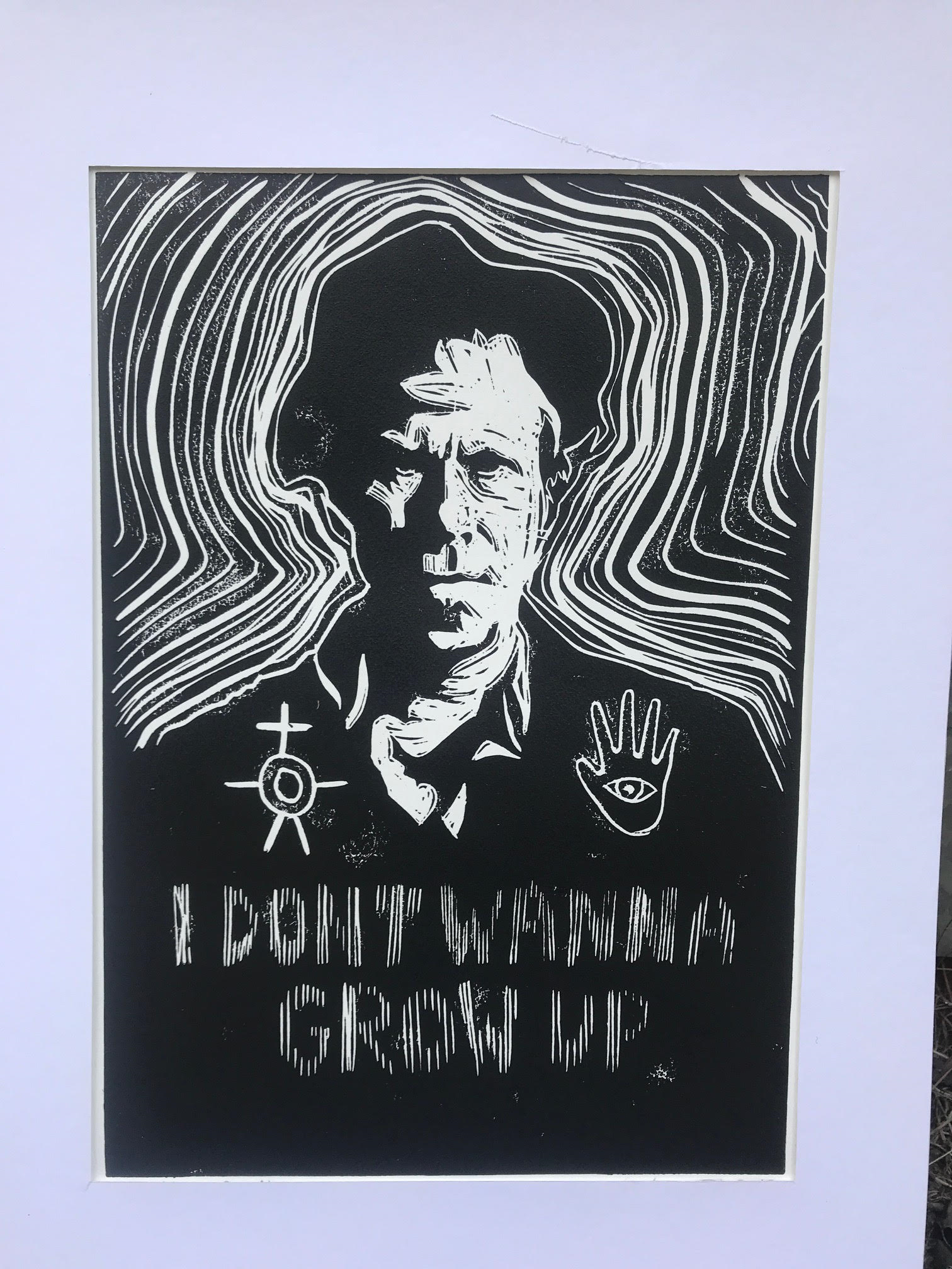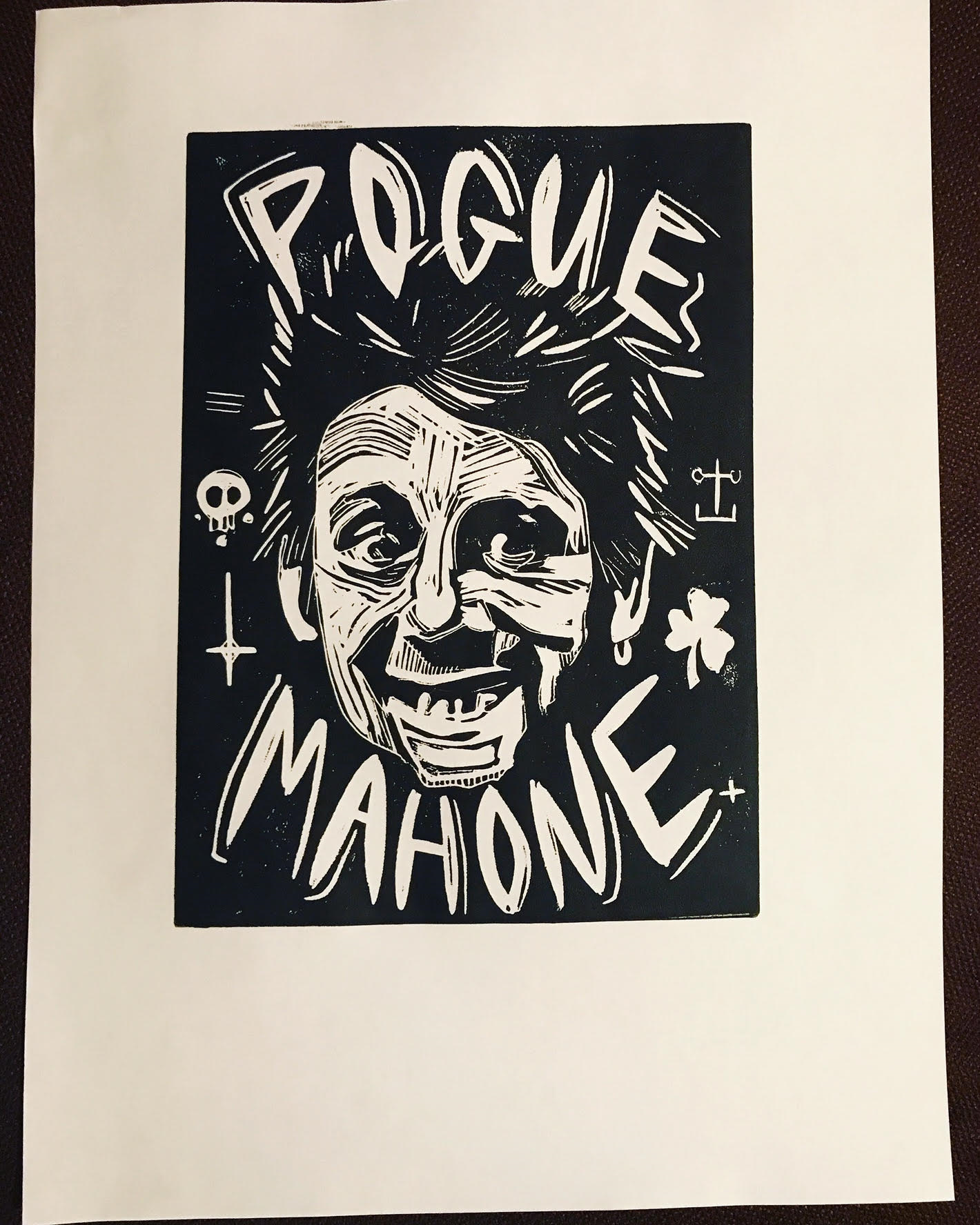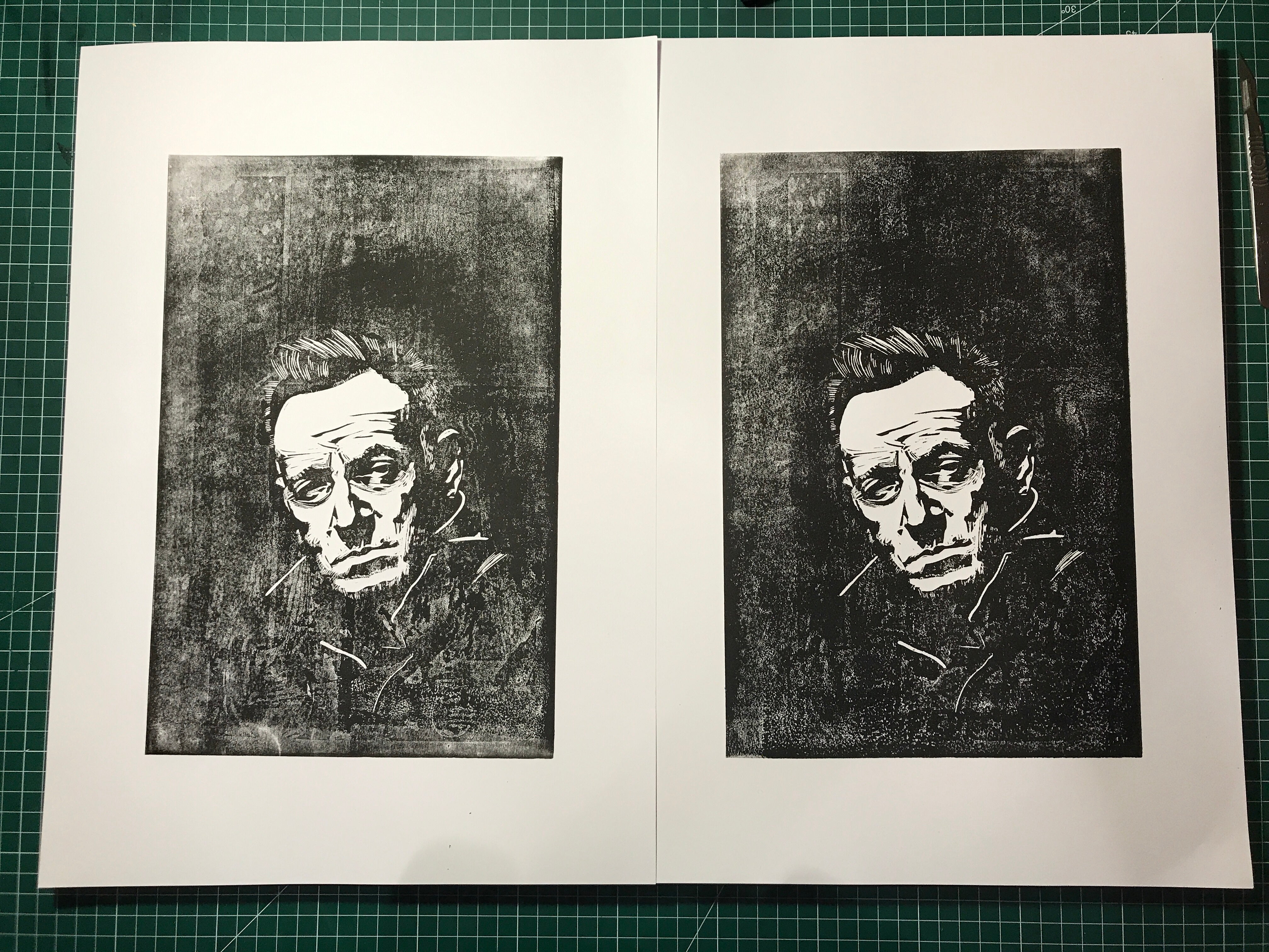 Karl Morgan lives in Llanelli, south Wales and prints under the moniker of Facing West Prints. By day he’s an Exhibitions Officer at Swansea Museum, by night he escapes to his summer house studio at the bottom of his garden and immerses himself in his passion for print. Self-taught, he traded his years of graphic design experience for something a bit more ‘hands on’. His images are influenced by his passion for pop culture, music & literary heroes and Welsh language & culture. One of his loves is collaborating with musicians on album artwork.