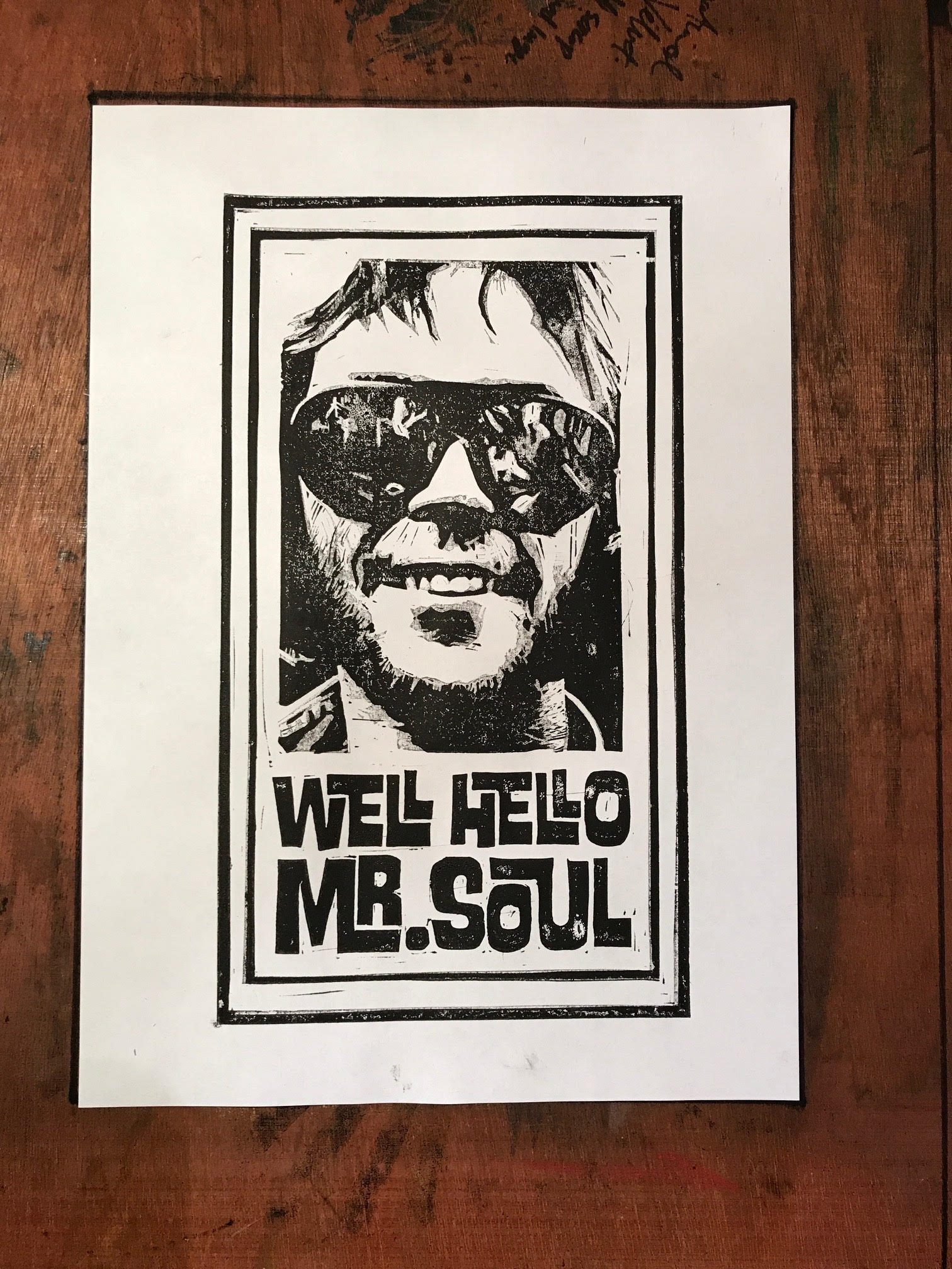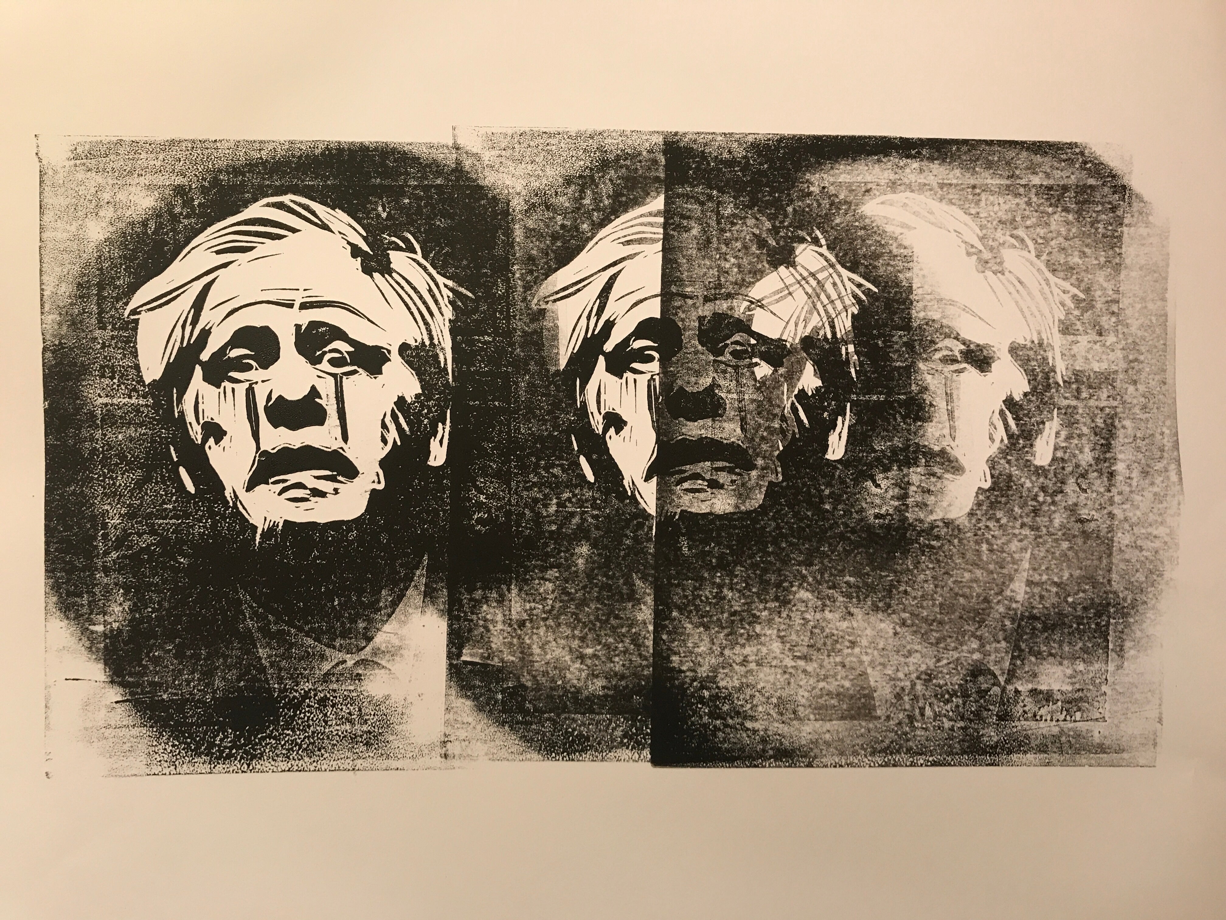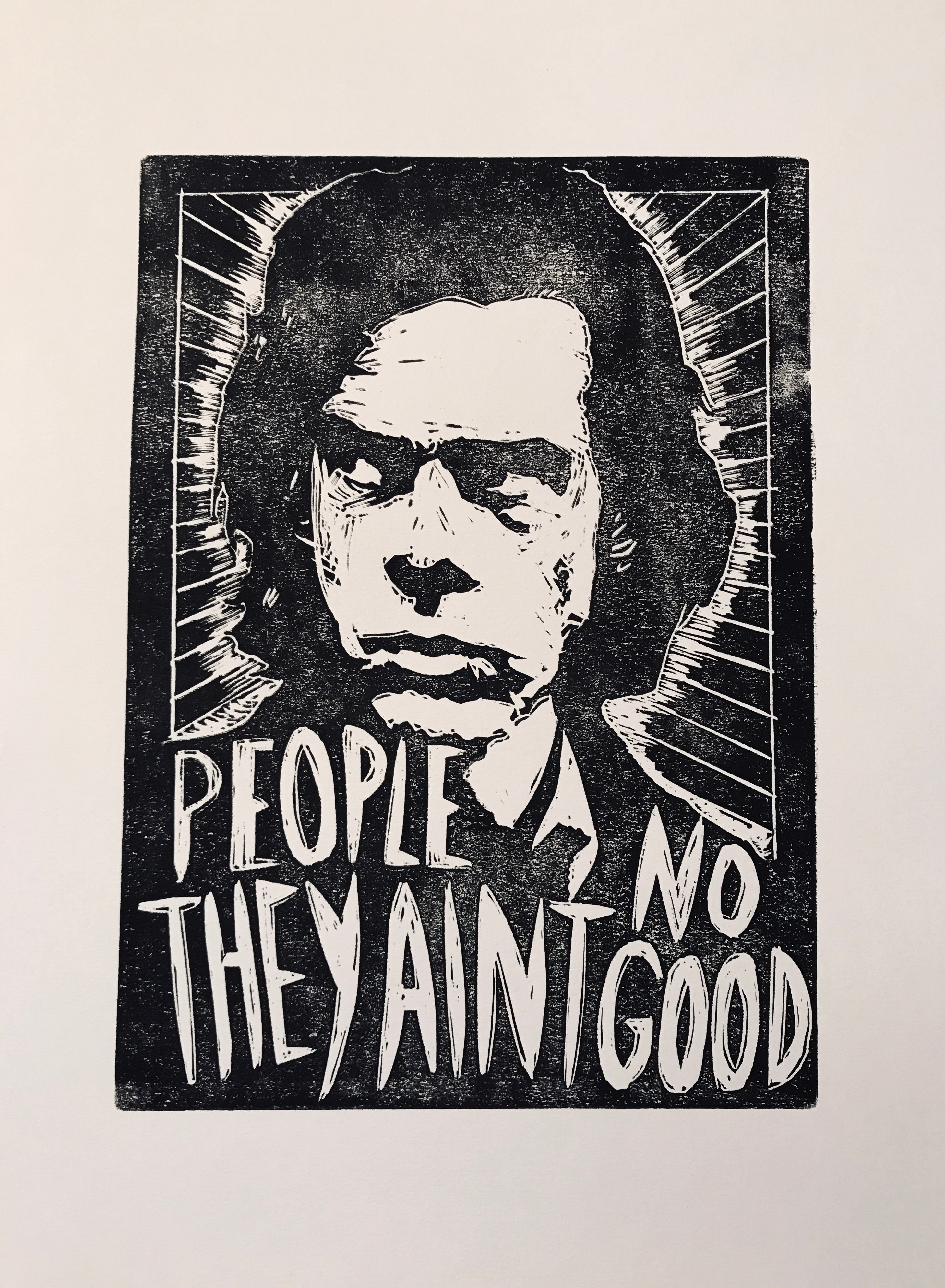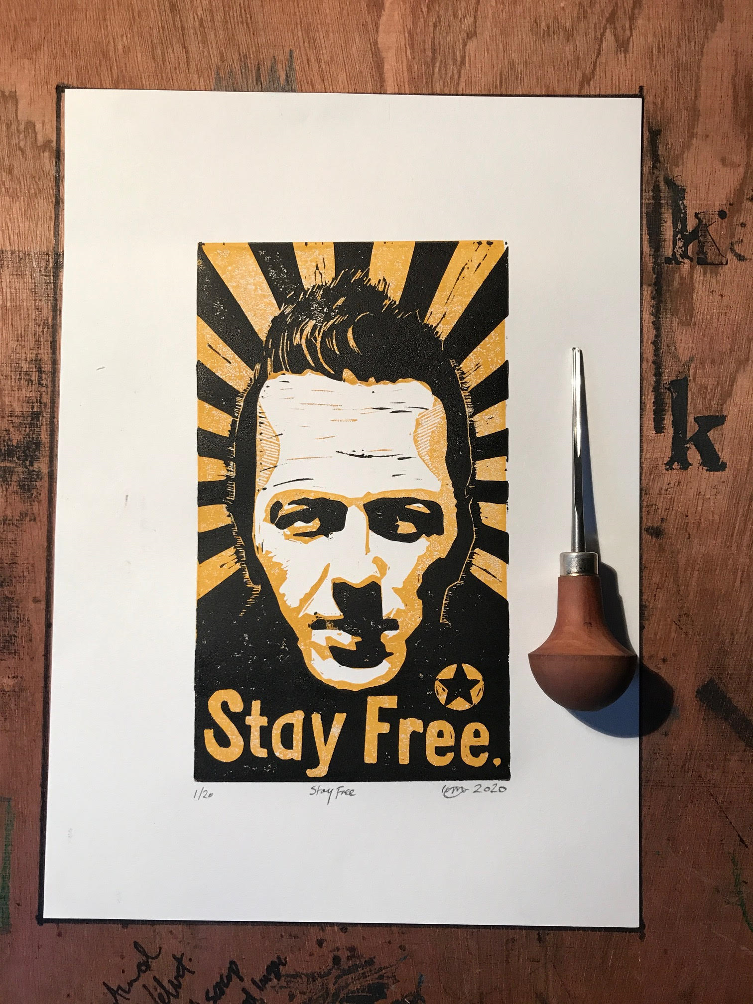 Karl Morgan lives in Llanelli, south Wales and prints under the moniker of Facing West Prints. By day he’s an Exhibitions Officer at Swansea Museum, by night he escapes to his summer house studio at the bottom of his garden and immerses himself in his passion for print. Self-taught, he traded his years of graphic design experience for something a bit more ‘hands on’. His images are influenced by his passion for pop culture, music & literary heroes and Welsh language & culture. One of his loves is collaborating with musicians on album artwork.