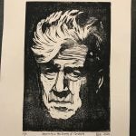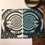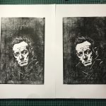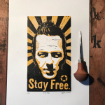 Karl Morgan lives in Llanelli, south Wales and prints under the moniker of Facing West Prints. By day he’s an Exhibitions Officer at Swansea Museum, by night he escapes to his summer house studio at the bottom of his garden and immerses himself in his passion for print. Self-taught, he traded his years of graphic design experience for something a bit more ‘hands on’. His images are influenced by his passion for pop culture, music & literary heroes and Welsh language & culture.