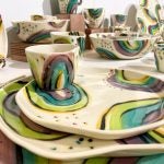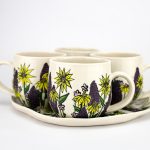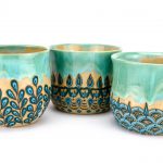 I started painting on my ceramics in college with Speedball underglazes and found myself coming back to them in my post bachelorette studio practice for multiple reasons. They hold their color from bottle to post firing extremely well. This allows me to paint intuitively without worry of tonal changes. I’m a bit of a color fanatic and I don’t like to be confined to a small palette, these underglazes mix well together, like paints, and the wide range of color options gives me unlimited opportunities for mixing. I also enjoy watering them down to get different opacities on my clay bodies.