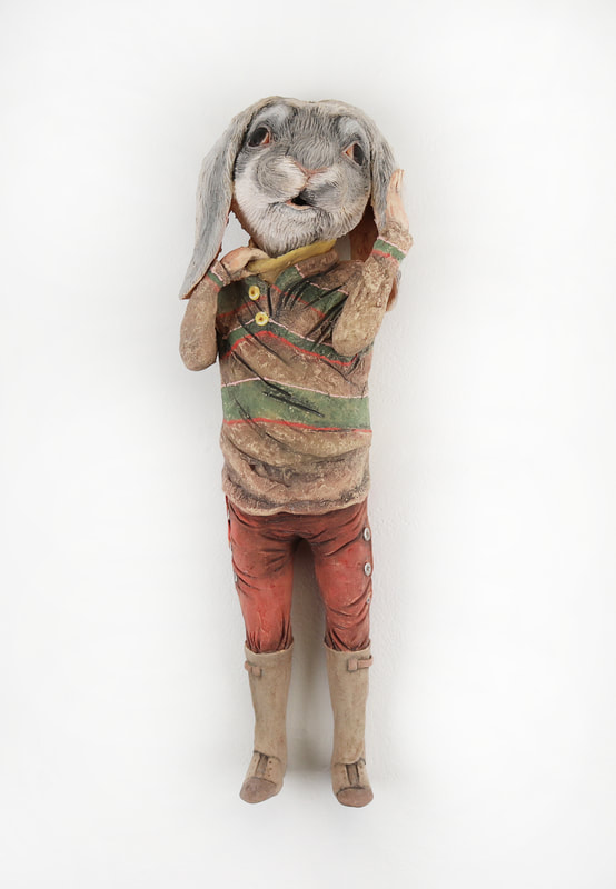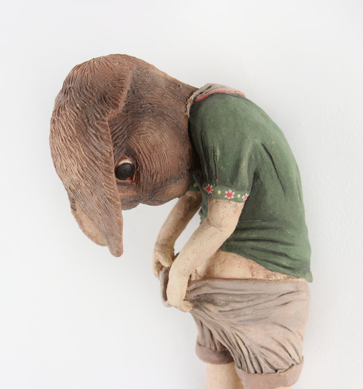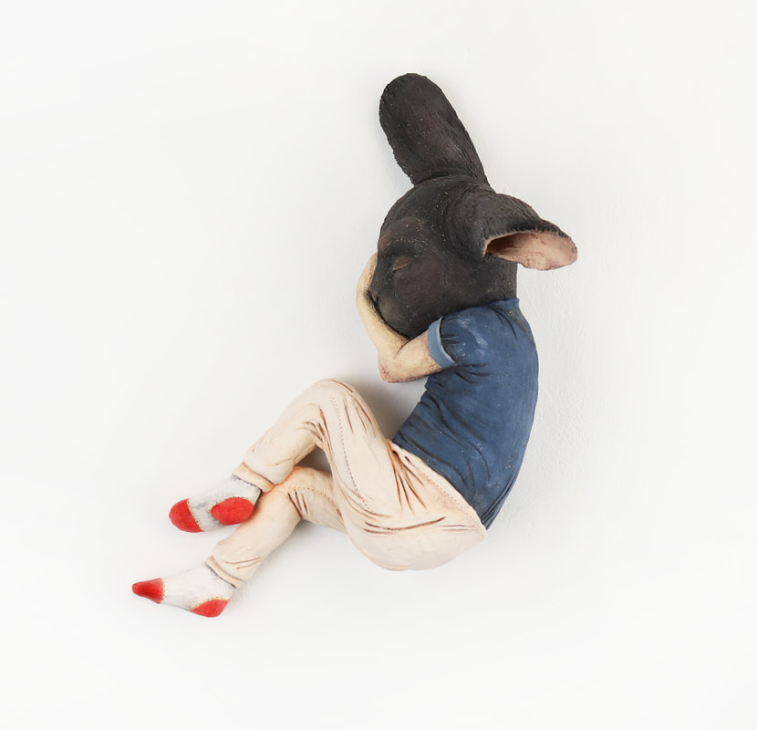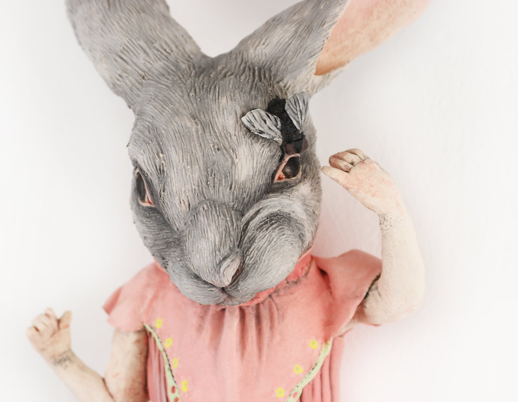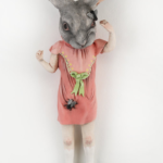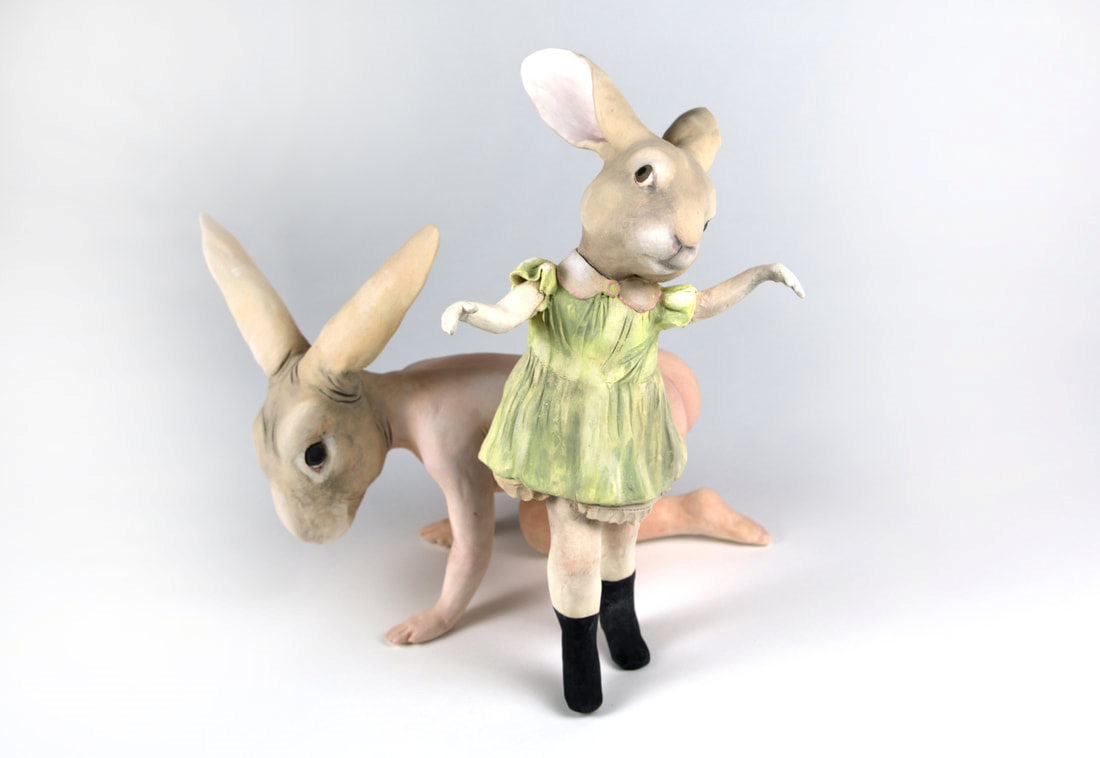 My tactile relationship with clay is my process of release and understanding. When I’m working on a piece, I feel in fleeting moments that it’s come to life, existing both here in reality and in its own surreal narrative. Working with my forms and creating these brief moments for myself are my last lingering stitches of childhood and a way to connect myself to what is no longer my tangible reality. For a moment, the fantastical objects in my world are alive and the stories I am telling are curiously real.