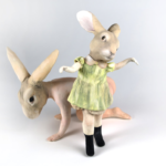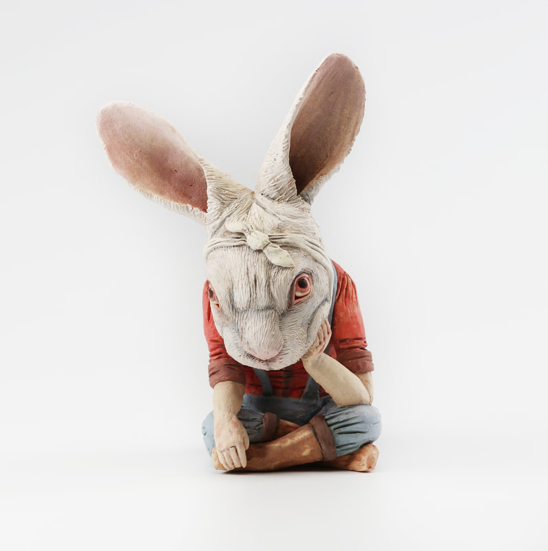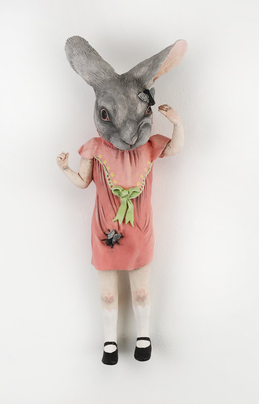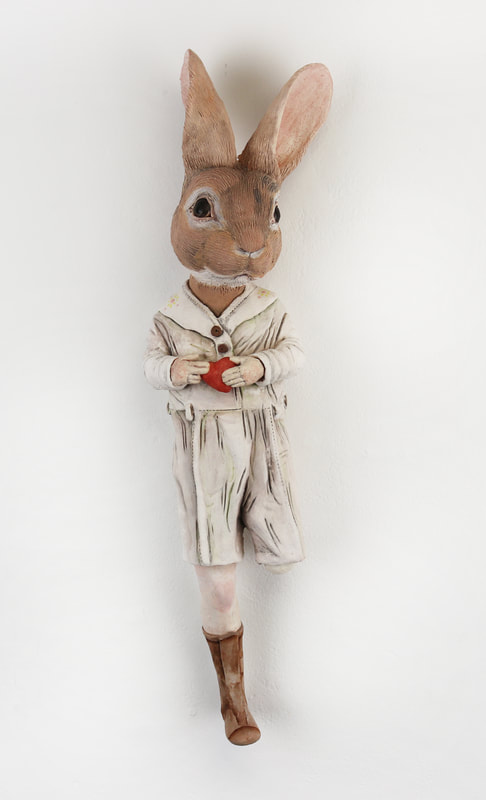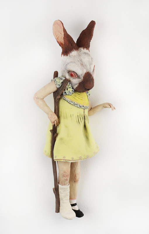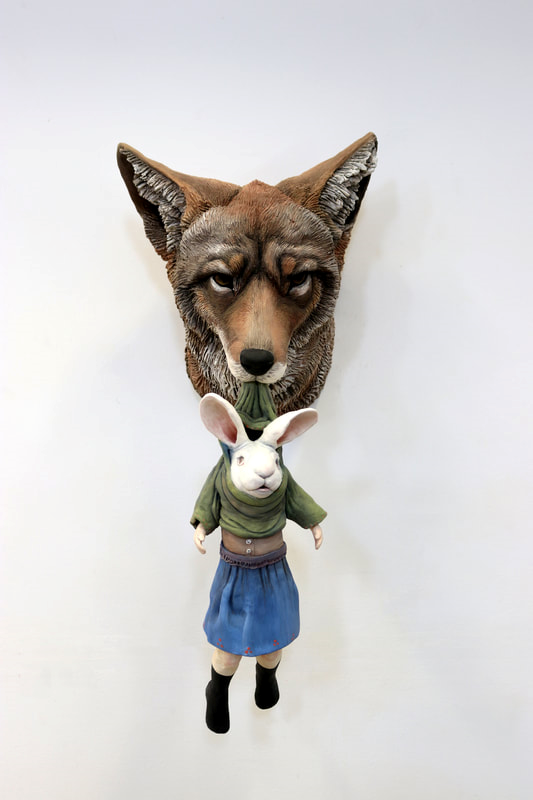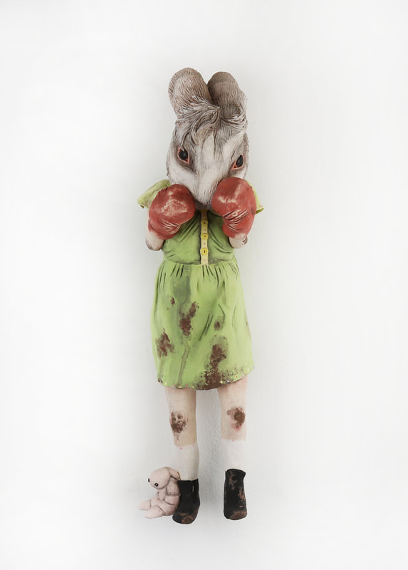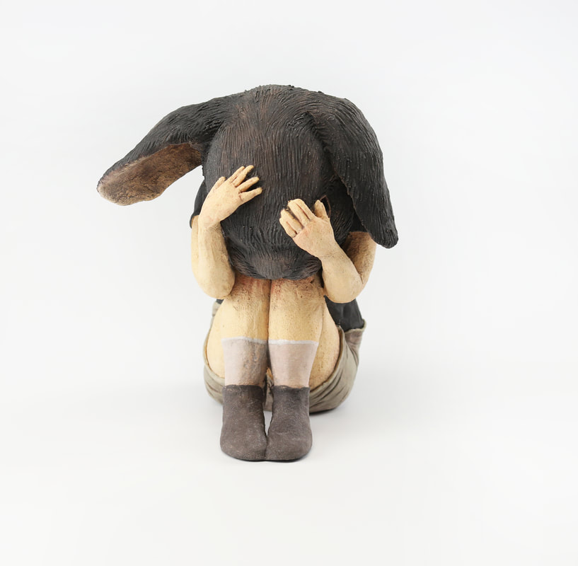 My tactile relationship with clay is my process of release and understanding. When I’m working on a piece, I feel in fleeting moments that it’s come to life, existing both here in reality and in its own surreal narrative. Working with my forms and creating these brief moments for myself are my last lingering stitches of childhood and a way to connect myself to what is no longer my tangible reality. For a moment, the fantastical objects in my world are alive and the stories I am telling are curiously real.