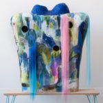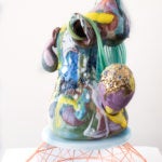 Ling Chun has a drive, a lust and a greed for color. She describes her ceramic forms as “playgrounds for glaze”, and she likes to challenge the rules and roles of ceramics as a material by disassociating the material from its stereotypical or culturally accepted uses. Removing still-hot pieces from the kiln, Ling applies liquid glazes to the surface creating a sizzling sound and a haze of steam until the glaze sticks. Hers is an intuitive process—over multiple firings and layers of glazes, her work is born of the spontaneous dripping, sliding, running, climbing and crawling that occurs. Finally, Ling adds hair to her finished pieces, which she sees as an extension of the glaze and signifies a progression and change in how the material is viewed.
