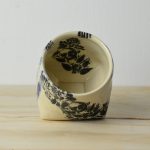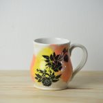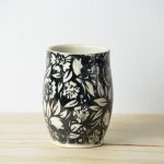 I mainly use the pottery wheel, sometimes with the help of plaster molds and hand-building to create mugs, bird baths, bowls, plates, and tumblers. I decorate mainly with silkscreens to screenprint directly to the clay. I’ve also been using underglaze transfers for quick and full coverage.