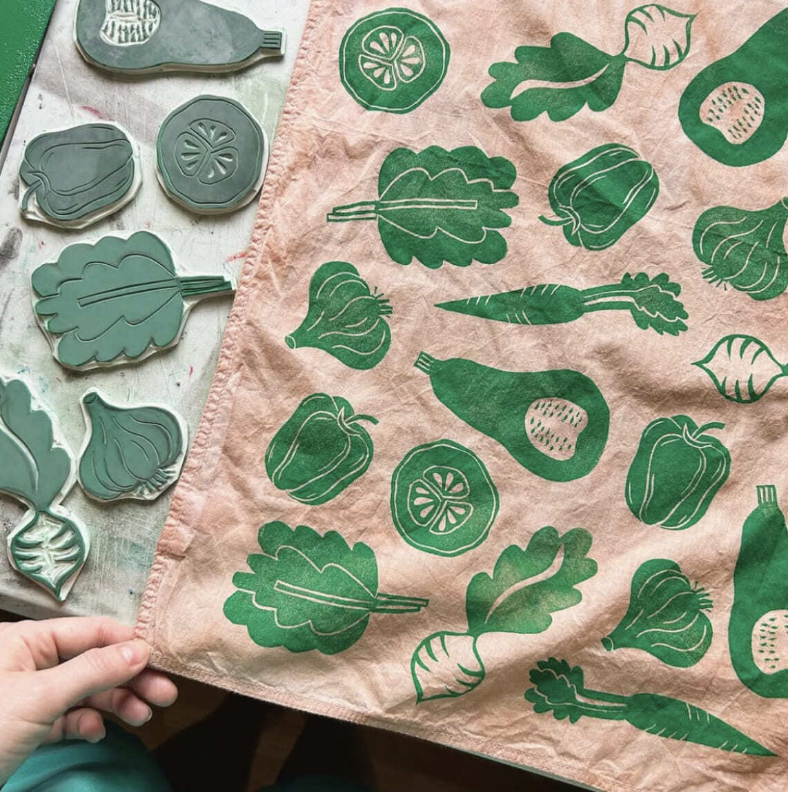 Speedball products were my go-to supplies when I first started printmaking, and I've continued to use them consistently. The technical tools (brayers, barens, and carving tools) are sturdy and long-lasting, and are useful for both beginners and advanced printmakers. The tubes of fabric blockprinting ink are fantastic for printing on textiles; I use this ink on cotton bags, tea towels, and clothing. Finally, the soft pink rubber called Speedy Carve is a treat to work with; it's thick, carves like butter, and never crumbles.