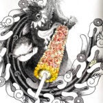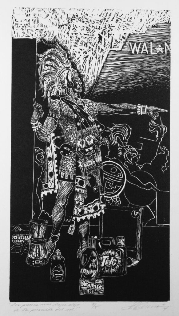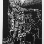 Manuel Guerra (b. 1969) was born and raised in El Paso, TX. What we call “locura” is Manuel Guerra’s unique way of taking aim at the folly of mankind. Manuel is a contemporary artist who mixes memory and Meso-American mythology to produce traditional renderings and prints of hilarious caricatures and lampoons in which the outcome is usually bizarre and/or violent. The works strongly point out the hypocrisy; foolishness, moral and ethical transgressions observed in the human fraternity of life in a predominantly Mexican-American ghetto.