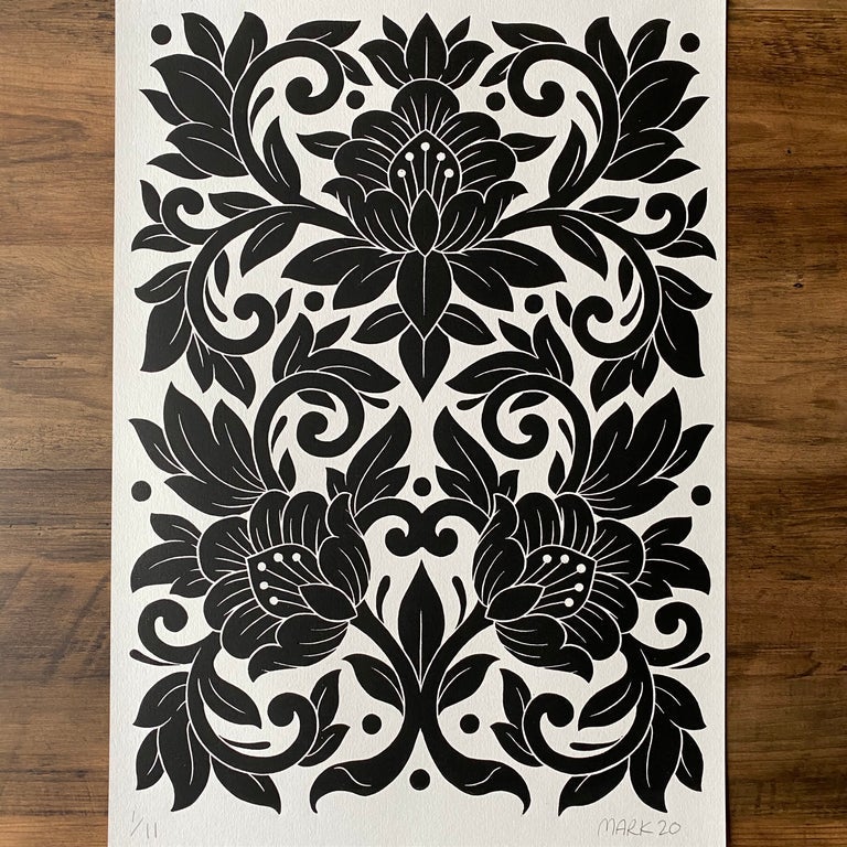 Mark Jelliman is an artist, printmaker and tattooer from London, UK who specialises in Relief printing and linocutting. He has an established career in tattooing under the name of Marktattooist, being known for his blackwork geometry and botannical designs. Mark draws a lot of inspiration and reference from his work within tattooing to put into his printing and finds inspiration within pattern, botanical illustration and Indian mythology.