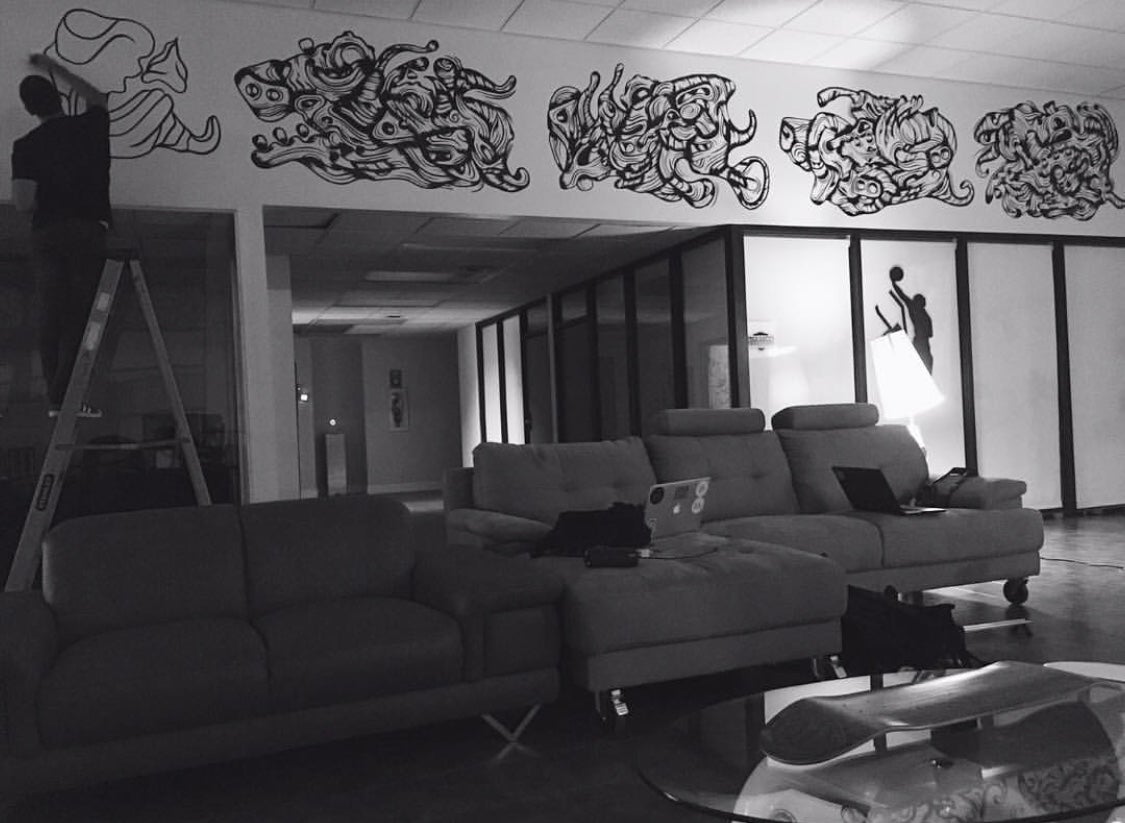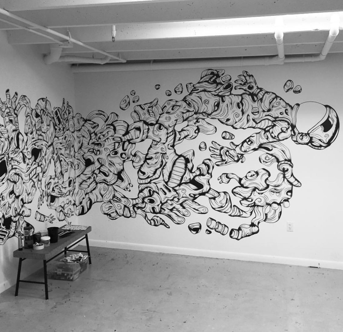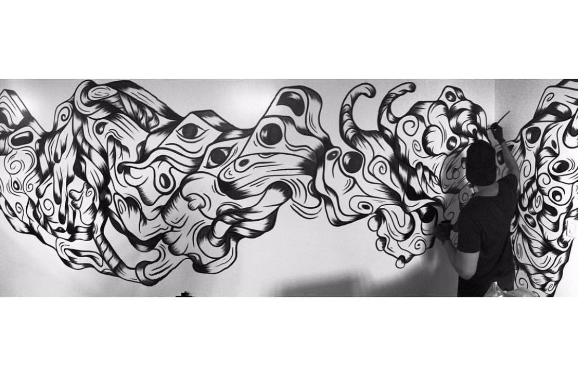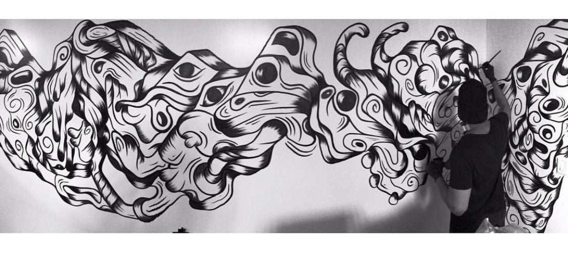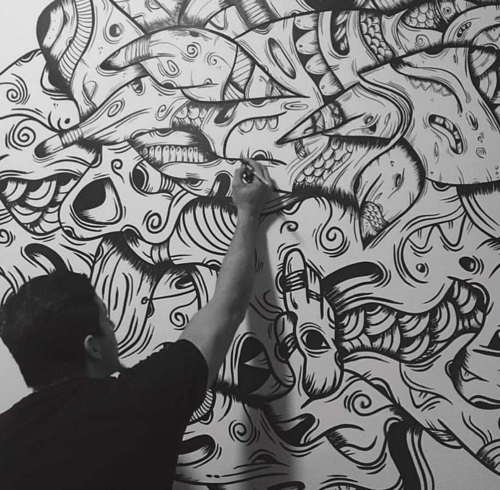 Max Guevara was born in Caracas, Venezuela and now lives in Miami. In 2014 he finished his studies as a visual communicator. Apart from being recognized as a graphic designer, artist and illustrator. If anything characterizes this artist, it is the drive for insight leading to achieve the technique applied in their illustrations, described by as “Organic Native”, using diverse materials and spaces for interventions. Max has been applying emerging techniques based on Aboriginal art, adapted to its simplicity and compositions with a fetish for marine and fossil, organic figures beings patterns.