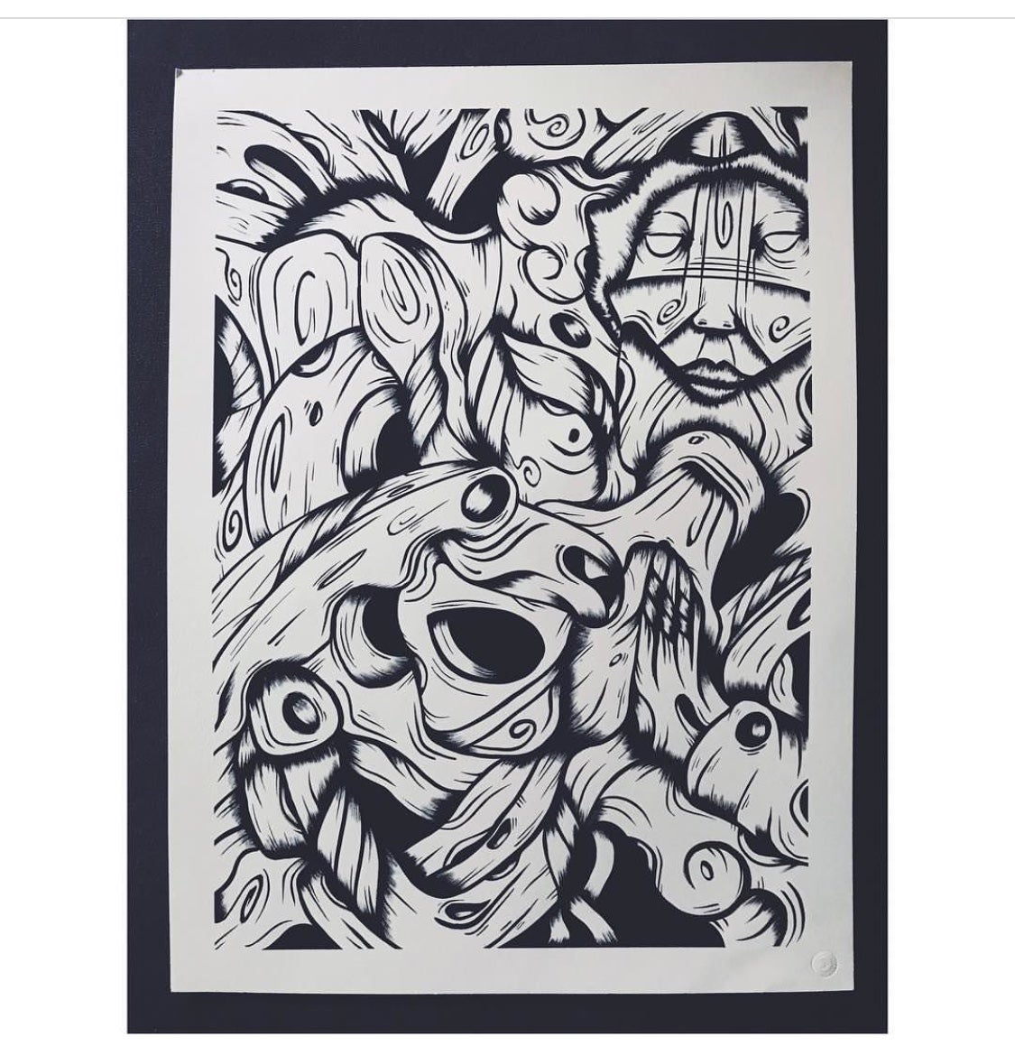Since I started painting, I experimented with many types of inks, always looking for non-toxic paints. After trying many paints, I found [Speedball Super Black] India Ink. This ink is perfect because it works perfectly with my strokes and my type of desigen. The density is perfect. The intensity of the color and the way the ink feels helps me to finish clean and fast.