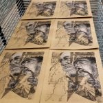 I use Speedball Acrylic Screen Printing Ink for creating serigraphs and also adding layers of color when I want to mix techniques. For example, drawing my key image as a lithograph and having the freedom to include colors with nice saturation and easy to clean between setting up the next screen. I also use Arnhem 1618 Paper when creating large scale woodcut prints. The paper takes the ink well allowing for high contrast imagery.