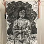 The images that are first carved on a linoleum or wood plate and later printed on paper or painted on a wall are the result of a learning process that began in the printmaking workshops/talleres in Oaxaca city. My education was primarily in traditional techniques like lithography, woodcarving and drawing; in this period of time I found the portrait as subject for me to communicate with others.