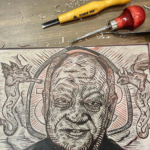 Through the representation of my surroundings, the portrait was both challenge and an appeal to me. The portrait turned into a portal where I can tell stories and try to find my language as an artist. Every portrait that I have carved or drawn has picked up stories of struggle, hope, highways, cities, animals, houses, protest, signs, injustice, malls, or even pre-hispanic glyphs. The power to exist between two cultures was no longer my goal; my purpose was now to create a third world, with other possibilities within my images and production. These images serve as a reminder of where I come from and to pay