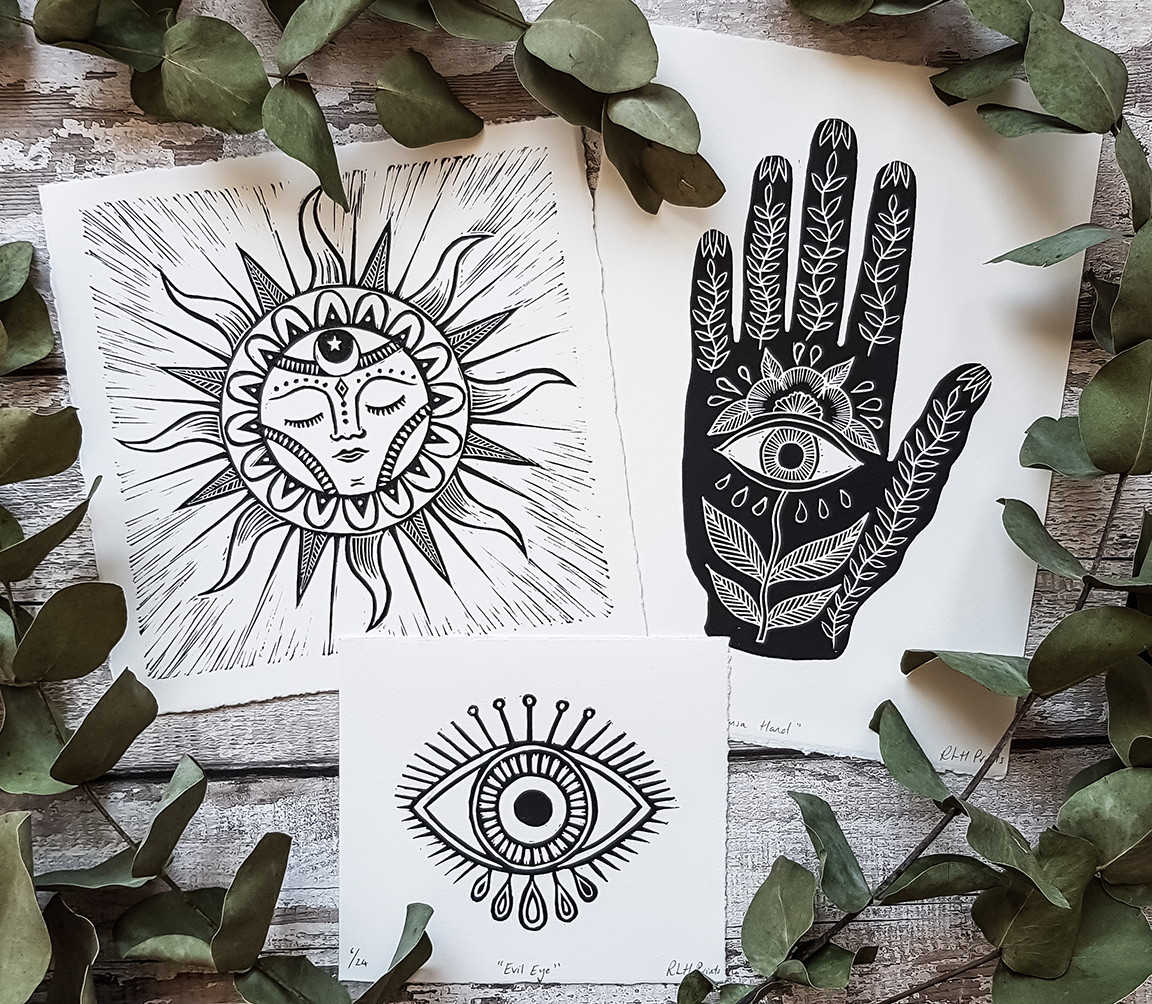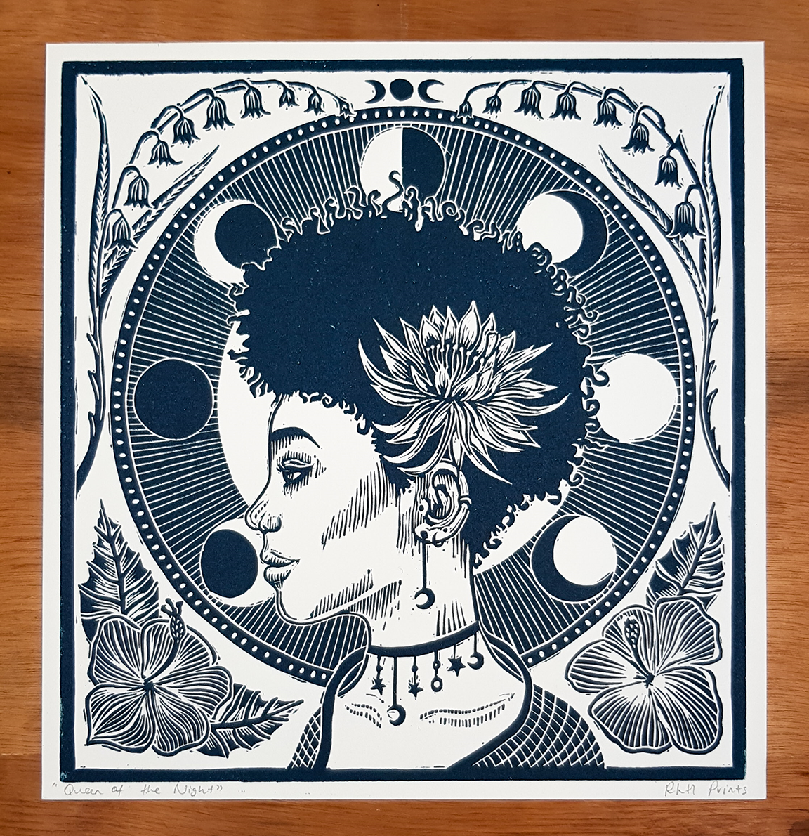 Rachael currently works full time as a facilitator for printmaking and photography in a further education college. She runs all kinds of creative workshops including Lino printing, collagraph, dry point etching, cyanotype and screen printing. She also maintains her own printmaking business named RLH Prints which consists of Rachael creating and selling her own original lino prints. Her main inspiration comes from the natural world with particular focus in the natural world, folklore and botany.