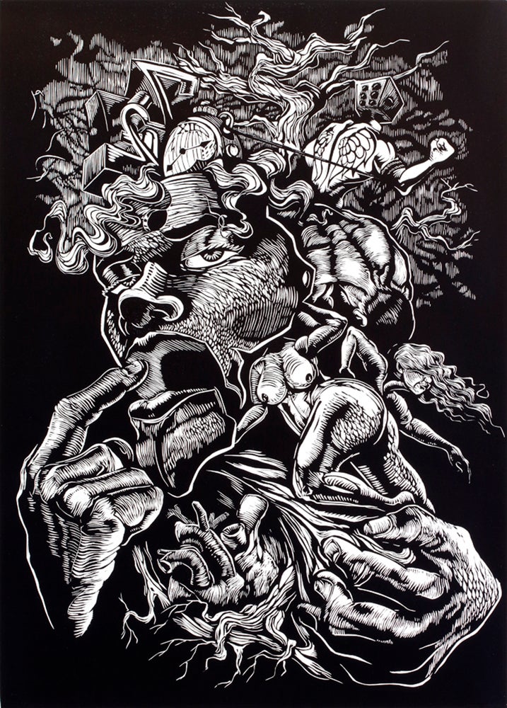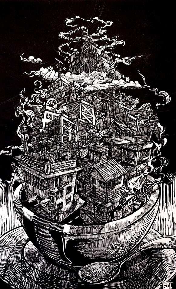 His narrative raises questions about daily issues equally experienced by people across cultures and borders, using relief printing as a storytelling tool for its illustration and reflection. He studies the universal idea of home and how it affects individual personalities by exploring iconography derived from the Majority World and fascinating storytelling inspired by Hispanic literature’s magical realism and illustrations from the Venezuelan Rosana Farias. His wordless visual narratives seek to challenge the limitations of the written language and bring people together to celebrate the commonality of their collective experiences.