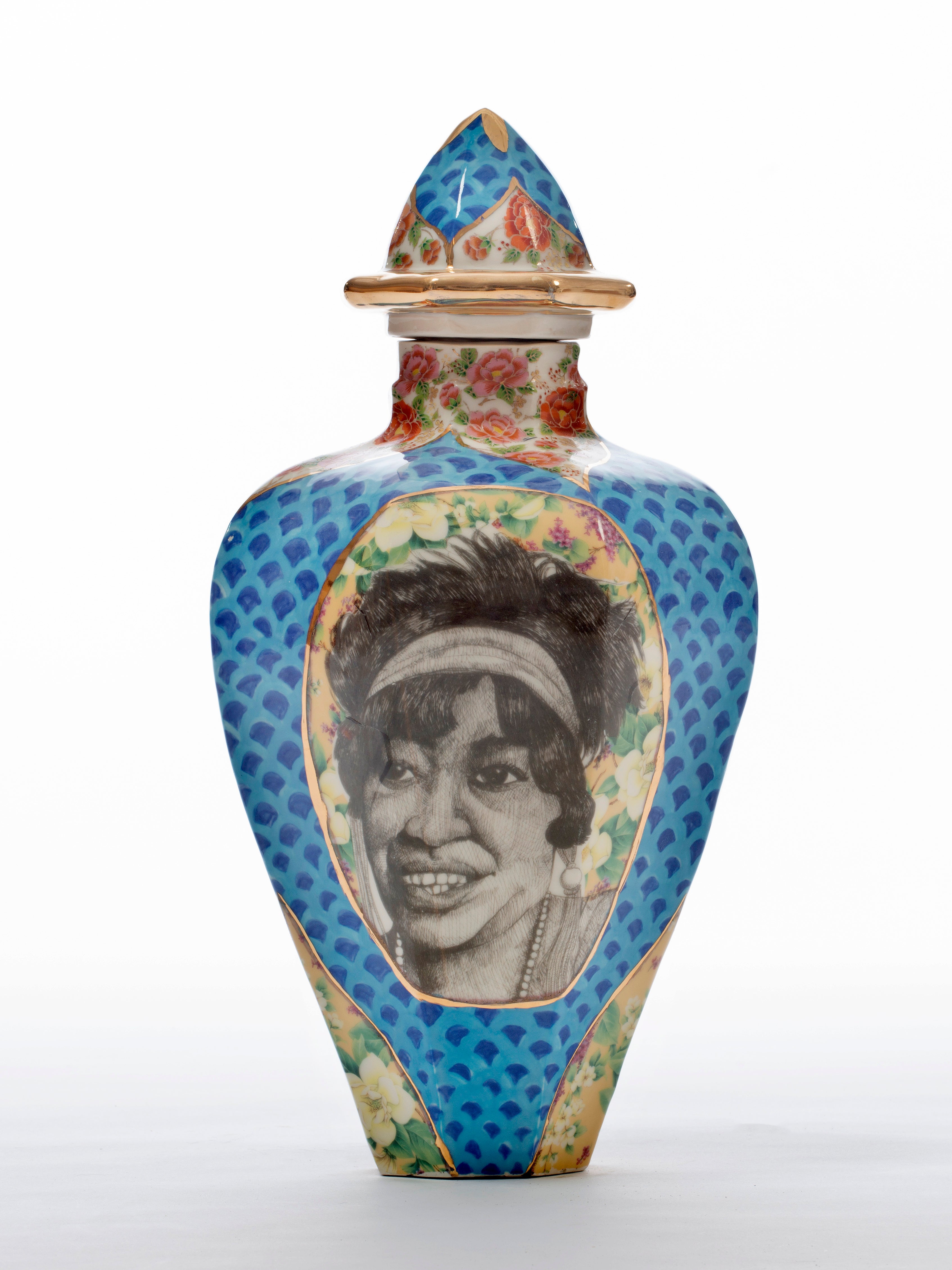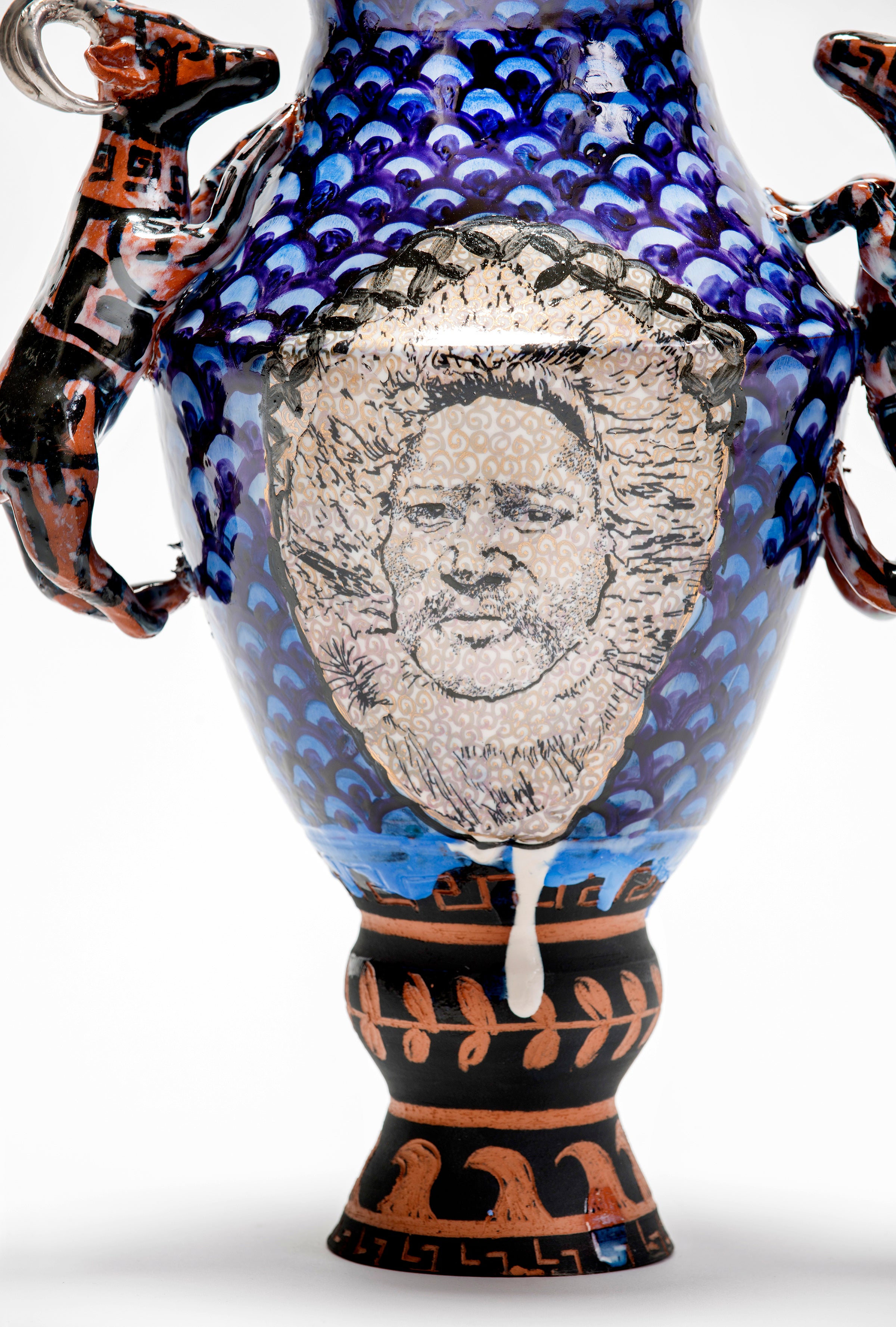 Roberto Lugo is a American potter, social activist, spoken word poet, and educator. Lugo’s work draws together hip-hop, history and politics into formal ceramics and 2D works. Born in Kensington, Philadelphia to Puerto Rican parents, Lugo began his career as a graffiti artist before discovering ceramics. Lugo holds a BFA from the Kansas City Art Institute and an MFA from Penn State. He has exhibited internationally and has work in the Collection of High and Philadelphia Museum of Art.