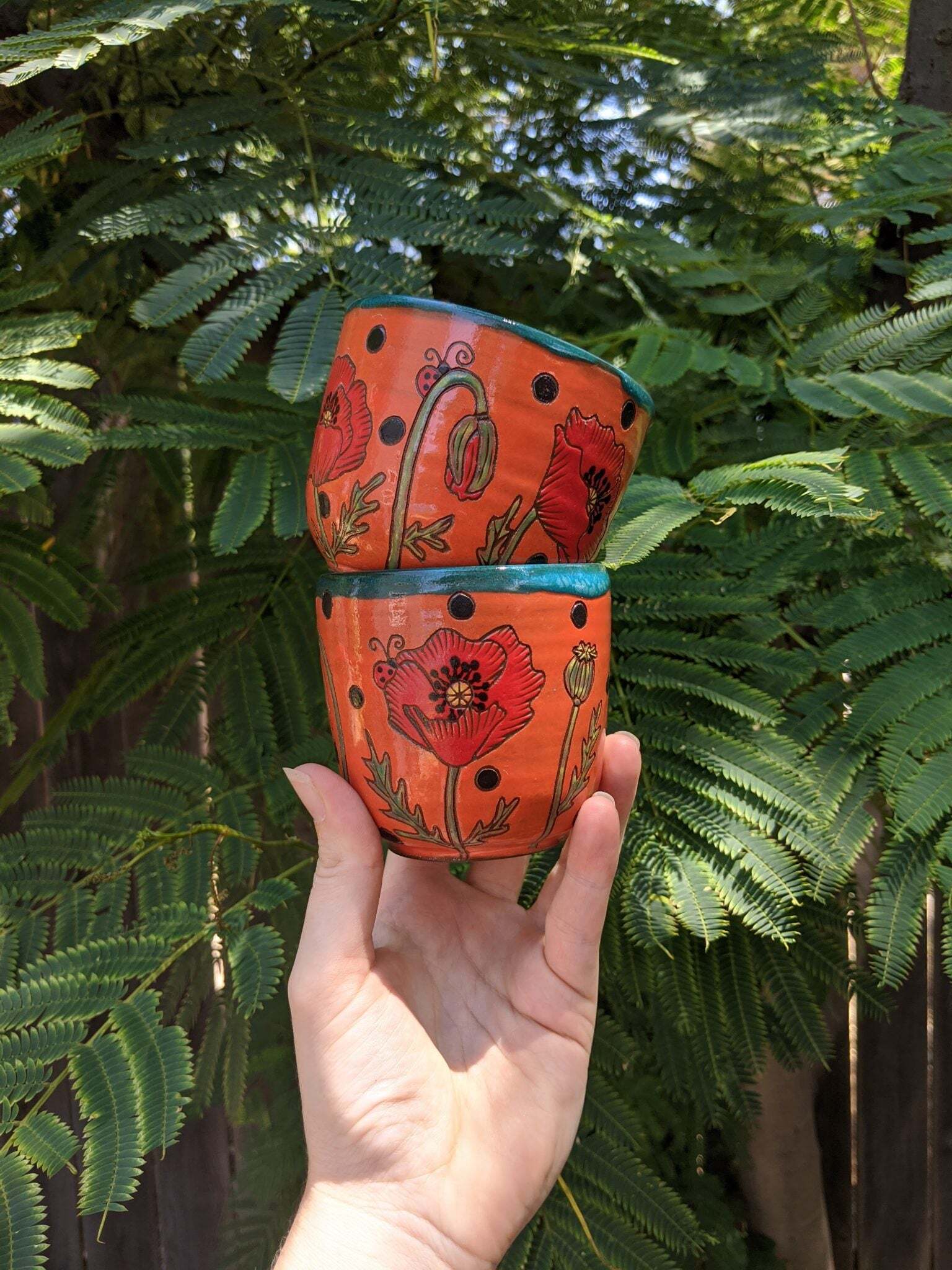 I am a small batch potter working out of my home studio. I make mostly functional work with stoneware that is heavily decorated with color and pattern using a variety of techniques and applications. My work is constantly changing and evolving due to my love for experimenting. I draw inspiration daily from my surroundings.