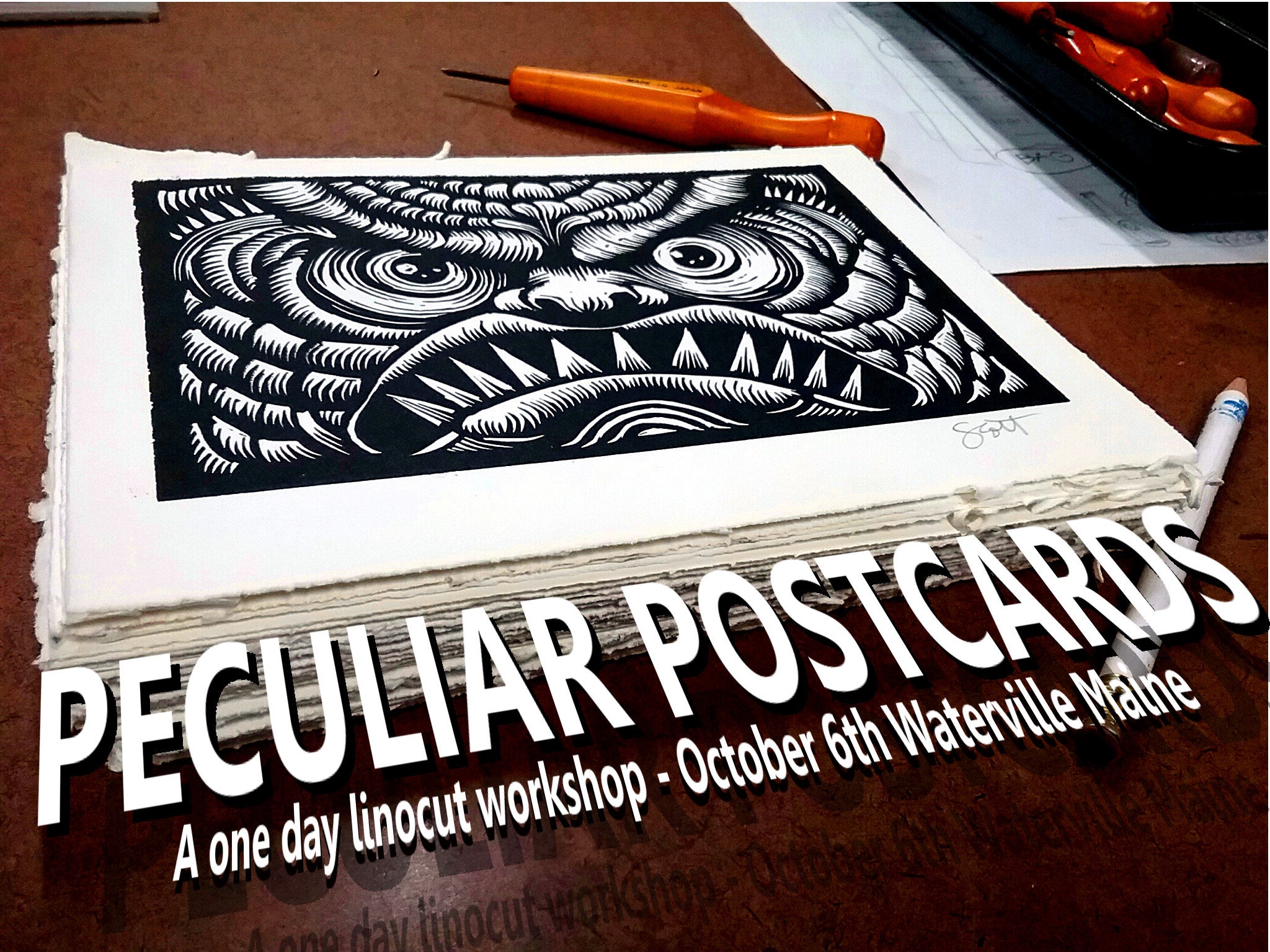 Scott Minzy makes relief prints, artist’s books, and animations that deal with the universal themes of fear, regret, and longing. His past life in public relations and corporate sales has led him to seek a less jaded but more authentic life in the state of his birth. As a result, he earned his Bachelor of Fine Arts from the University of Southern Maine and teaches high school fine art and digital media. When not teaching or in his studio, Scott like s to copy illustrations from old dictionaries, daydream about having super-powers and scour used bookstores feeding his unhealthy obsession with self-help books. His artwork has been included in the collection of Bowdoin College and Kennesaw State and has been exhibited and screened Internationally.