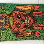 “I chose the name, ” Guided by Green” as a nod to my all time favorite band, Guided by Voices. I have made hundreds and hundreds of woodcuts, every single one was made with Guided by Voices blaring loudly in the background. The color green was inspired by my lifelong passion for Mountain Dew which has given me the energy to carve all of those woodcuts!”