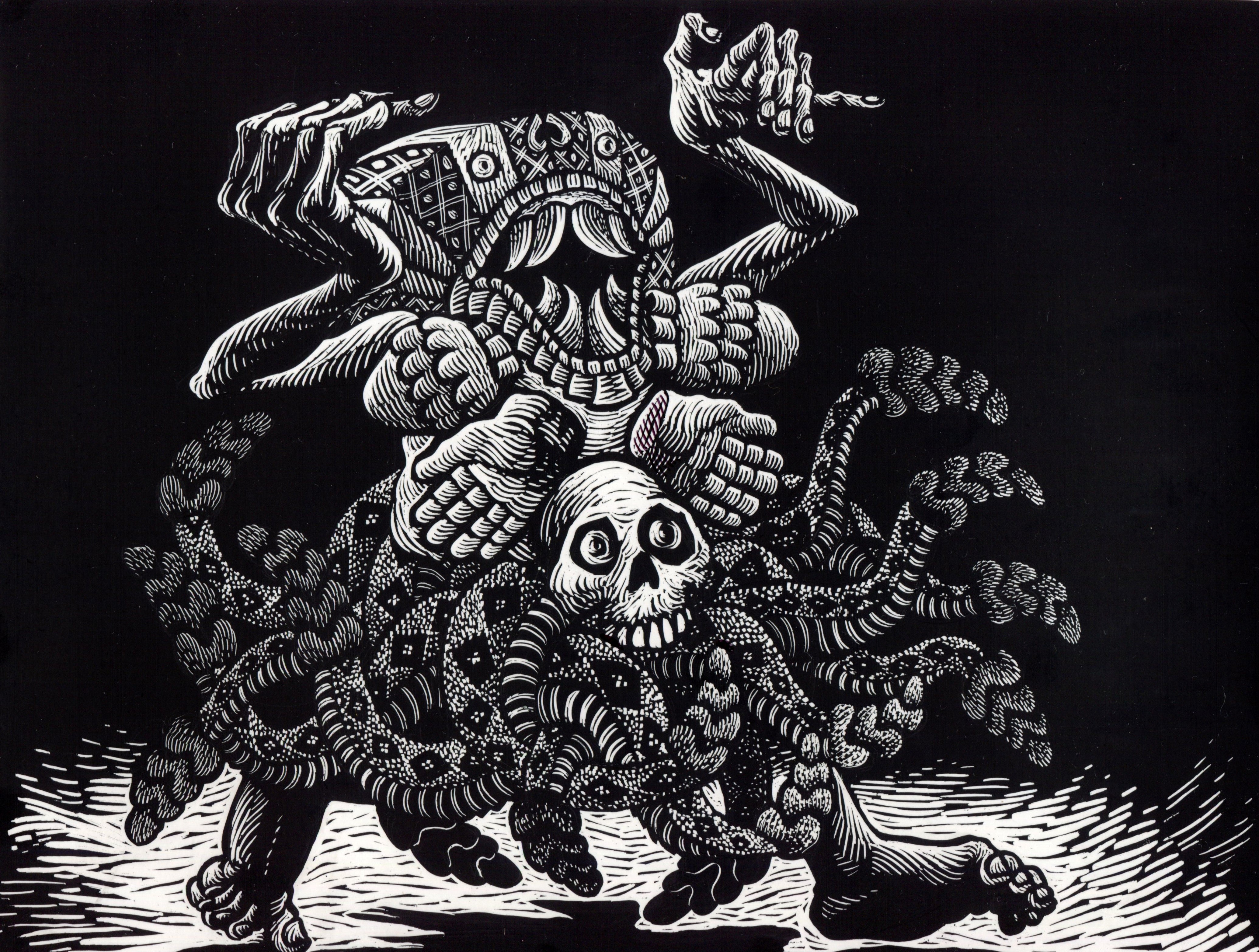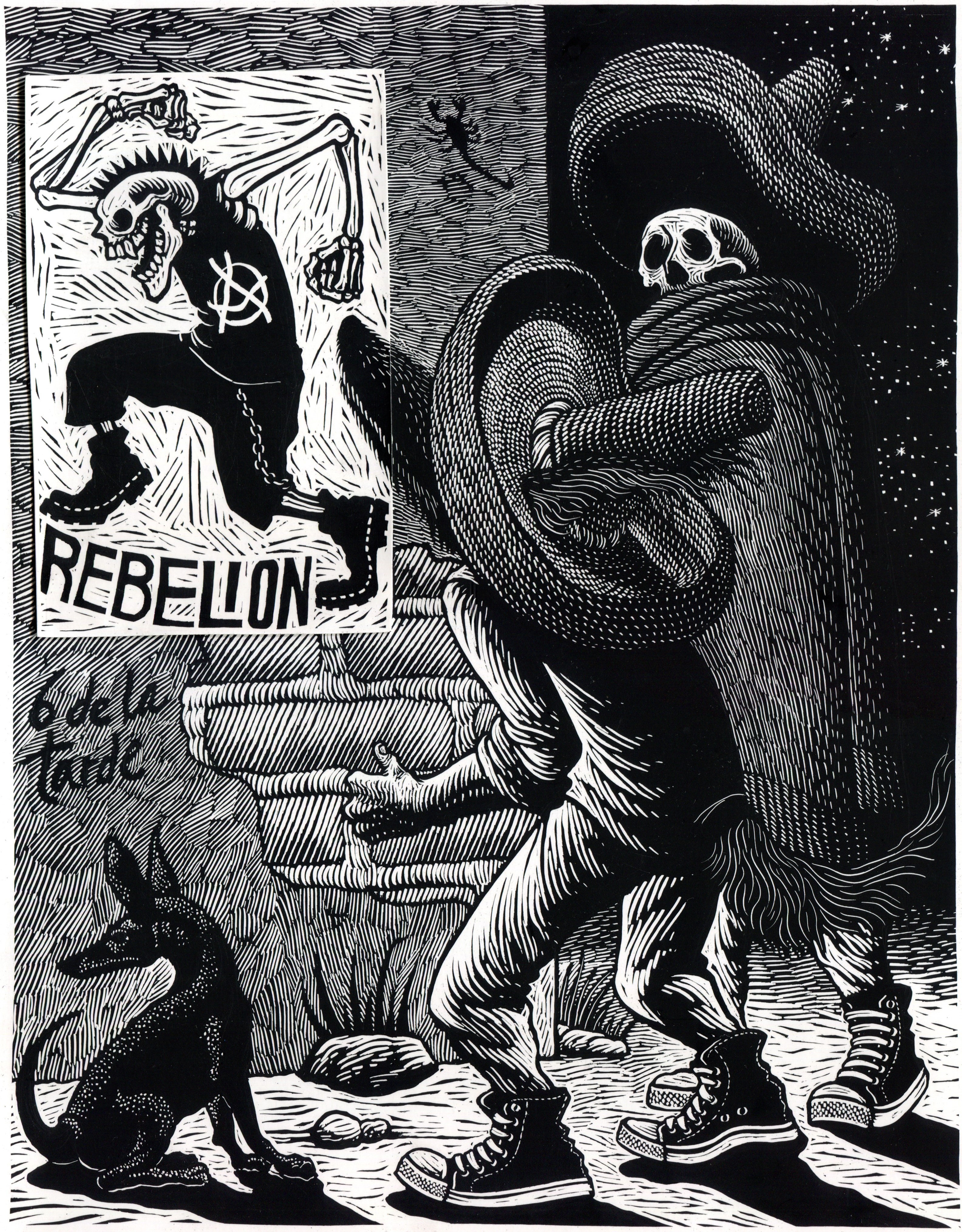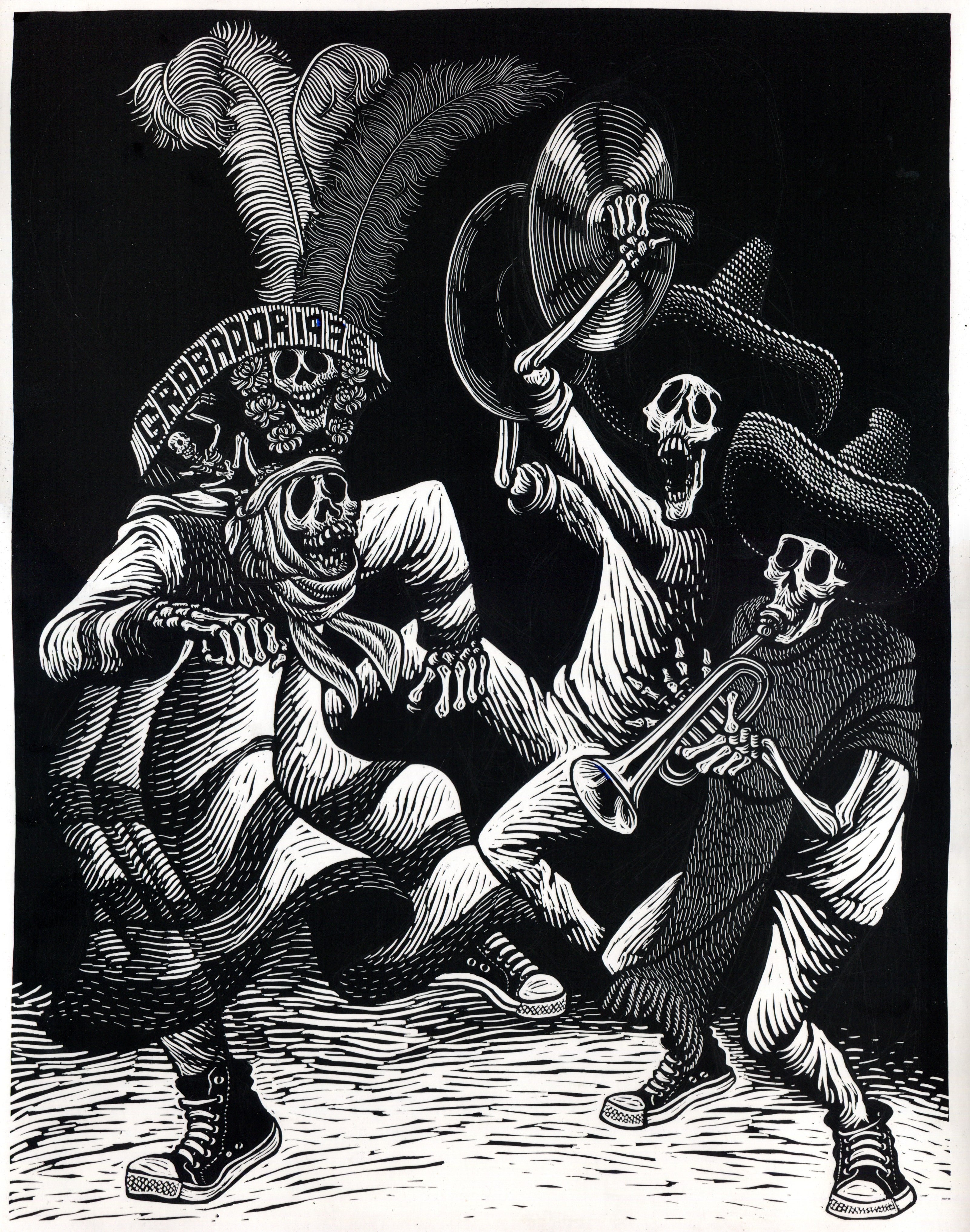 Las navajas son geniales, desde aquel entonces nunca deje de usarlas , ahora trabajo una serie de tablas de skateboard donde la herramienta que uso, son gubias Speedball con tintas Professional reliefs inks color, Crimson red y Supergraphic black entintadas con rodillos (Soft Rubber Brayers y Hard Rubber Brayer).