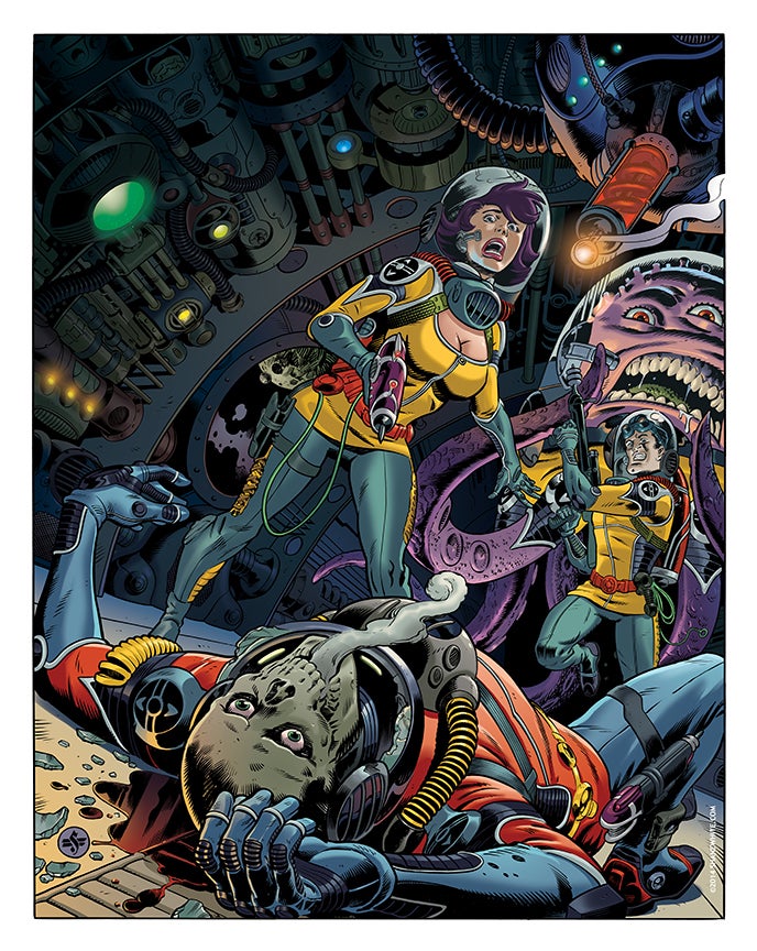Some of his comic projects include short stories in books like Fear Agent, Pathfinder Goblins, Hawaiian Dick, and Comic Book Tattoo as well as graphic novels like Things Undone and his latest sci-fi adventure, Braun (available only through his website). He’s currently illustrating the surf noir series, Endless Summer, for Insight Editions as well as writing his next novel.