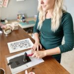 Simone Bryant is an artist and printmaker, making playful hand-carved rubber stamps out of her home studio in Alpharetta, GA. She specializes in block printing and loves carving fine details, using whimsical gradients and working with other makers to create custom logo stamps. After 10 years in corporate marketing roles, Simone found her passion for printmaking after deciding to put her career on pause while raising her twin boys. She stumbled upon the Speedball block printing kit at the craft store, and never looked back, spending nearly every day over the next year carving. Her one-woman shop for prints and custom stamps, Barneby Fox, opened in early 2020.