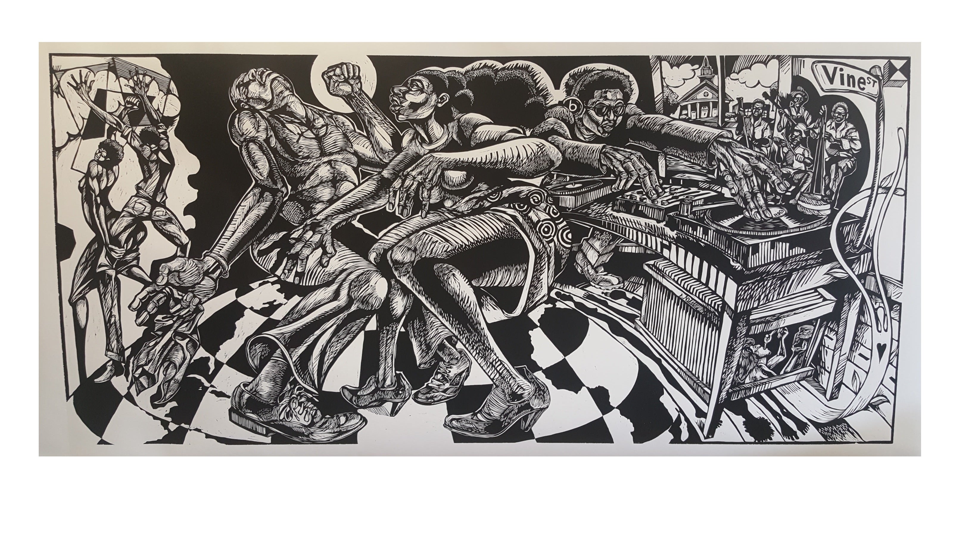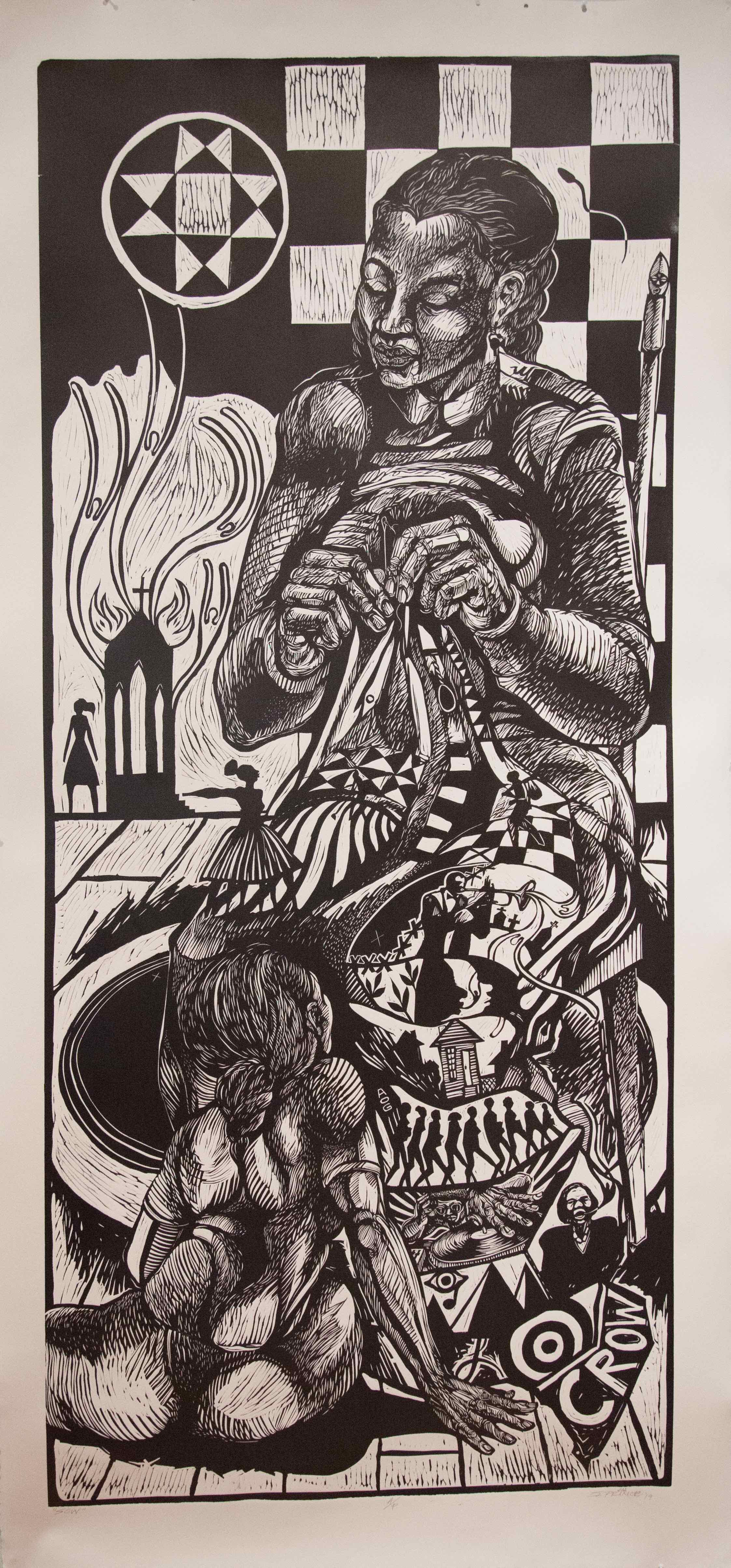 Steve A. Prince is a native of New Orleans, Louisiana, and he currently resides in Williamsburg, Virginia. He is the Director of Engagement and Distinguished Artist in Residence at the Muscarelle Museum at William and Mary. Prince received his BFA from Xavier University of Louisiana and his MFA in Printmaking and Sculpture from Michigan State University. Prince is a mixed media artist, master printmaker, lecturer, educator, and art evangelist. He has taught middle school, high school, community college, 4-year public and 4-year private, and has conducted workshops internationally in various media.