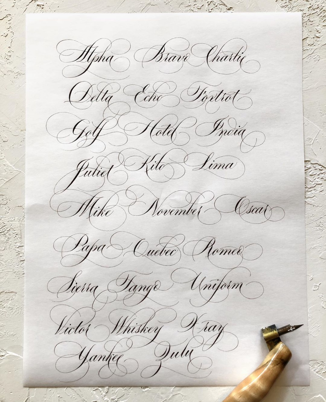 Suzanne Cunningham is a professional calligrapher with 27 years of experience. She has taught many workshops and private lessons, including Letterworks 2017, IAMPETH 2018 and 2019 and numerous guilds throughout the country. She is scheduled to teach at IAMPETH in 2021, 2022, and at Legacies lll. She has participated in workshops taught by Master Penman Jake Weidmann, Michael Sull, Barbara Calzolari, Harvest Crittenden, Mike Kesceg, Pat Blair, and Crown Office Scribe Paul Antonio. She has also taken classes from Heather Held, Barbara Close, Bill Kemp, Angela Welch, Anne Elser, Maria Helena Hoksch, Yves Leterme, David Grimes, Phyllis Macaluso, and Karen Brooks. She specializes in Copperplate Script and enjoys adding flourishes to her calligraphy. Suzanne lives in Florence, Alabama with her husband, two daughters, and Golden Retrievers, Mabel and Dixie. You can find her on Instagram by searching at @suzcunningham.