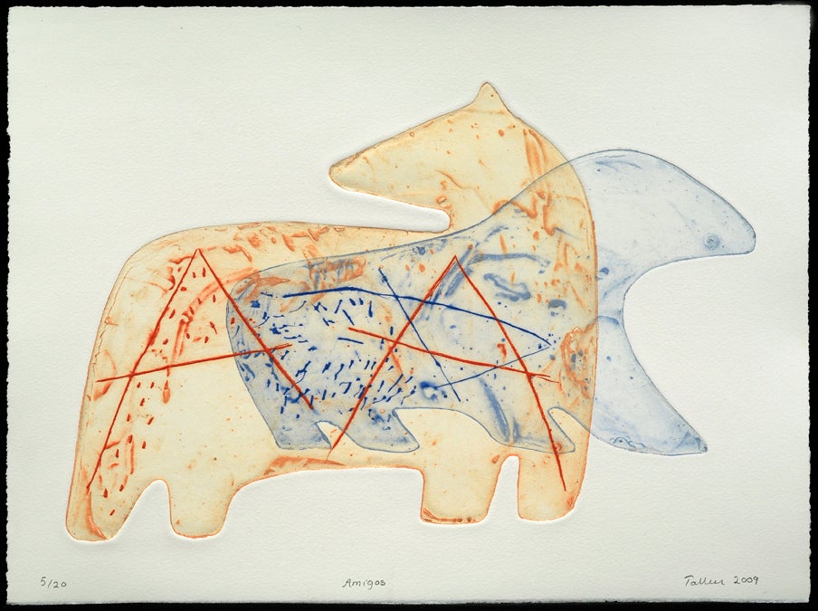I started using Akua Inks in 2014, after a long practice of using oil based printing inks. While my passion for printmaking remained insatiable, I was becoming disenchanted with the arduous and toxic process of printing with traditional methods and inks. My printmaking practice revolves around collagraphy, monotype and relief, all of which involve non-toxic plate making. It was a natural step for me to gravitate to non-toxic water-based Akua Inks, to render my entire printmaking method safer and more pleasant. When I started researching about the water-based printing inks on the market, I was immediately drawn to Akua. I liked that it was designed by printmakers. The informative demo videos on the Akua website motivated me to start experimenting with the inks.