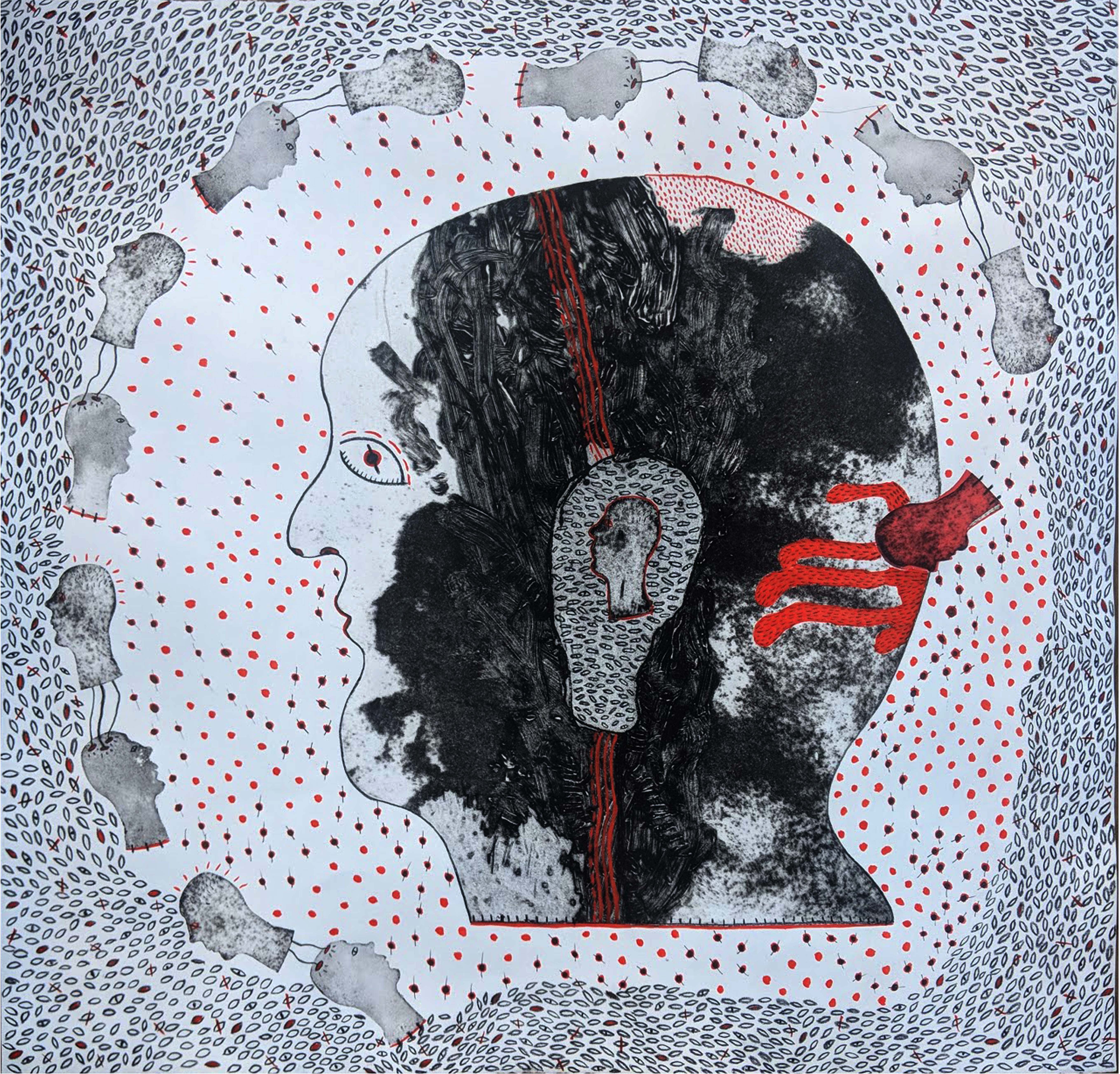Tess Doyle works primarily in printmaking, drawing and mixed media. Inspired by pop culture, personal idols, victims and everyday encounters, she creates an array of figurative and symbol heavy imagery. Her drawings and prints often contain bizarre narratives and pastiche. Tess received her BFA in printmaking from the Milwaukee Institute of Art & Design. Along with her studio practice, Tess works as an art educator at a local performing and visual arts high school, and is Press Assistant at Burning Bones Press in Houston, Texas.