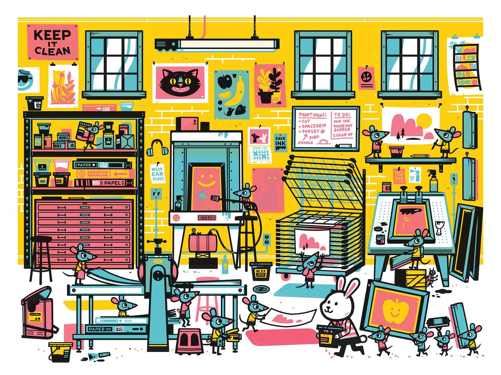 The Little Friends of Printmaking are a husband-and-wife duo of award-winning illustrators and designers. Their clients include Disney, FX, Cartoon Network, and Nike. In addition to their work as illustrators and designers, they continue their fine art pursuits through exhibitions, lectures and artists’ residencies worldwide, spreading the gospel of silkscreen to anyone inclined to listen. The Little Friends currently live in Los Angeles with too many animals.