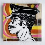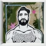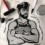 TotesFerosh (Josh Epstein) is a Queer artist specializing in printmaking. Using linocut as his key medium, he integrates stylized figures with expressive mixed media backdrops. After mounting his work on wood panel, a hard resin coating stratifies his subjects further by juxtaposing raw and emotional work under a hyper glossy finish.