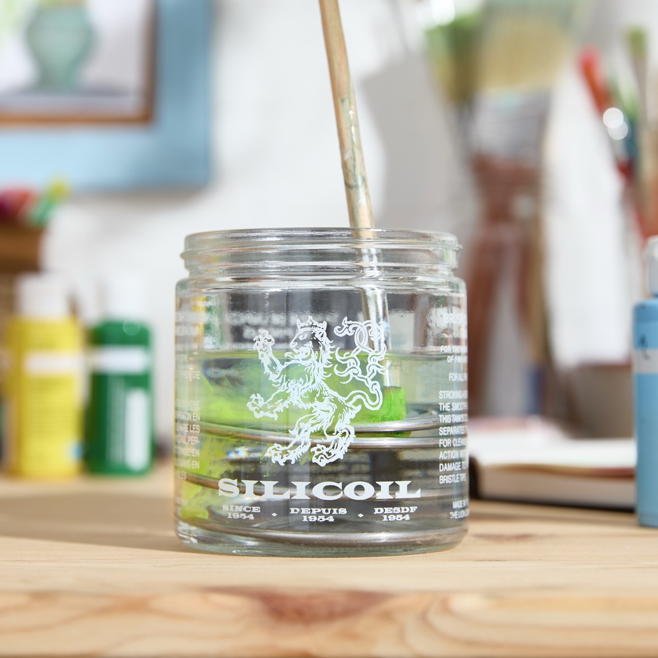 Silicoil's iconic journey into artist's studios began in 1954 when Leo Zimmerman, an artist and engineer, was frustrated with damaging brush cleaning methods and opted to invent his own ingenious solution. The key lies in Silicoil's innovative smooth aluminum coil. Traditional methods often harm delicate brush "flags" (tips). Silicoil's gentle design allows you to stroke brushes submerged in cleaning fluid, separating bristles for thorough cleaning. Paint settles, flags remain undamaged, and brushes stay pliable for extended use.