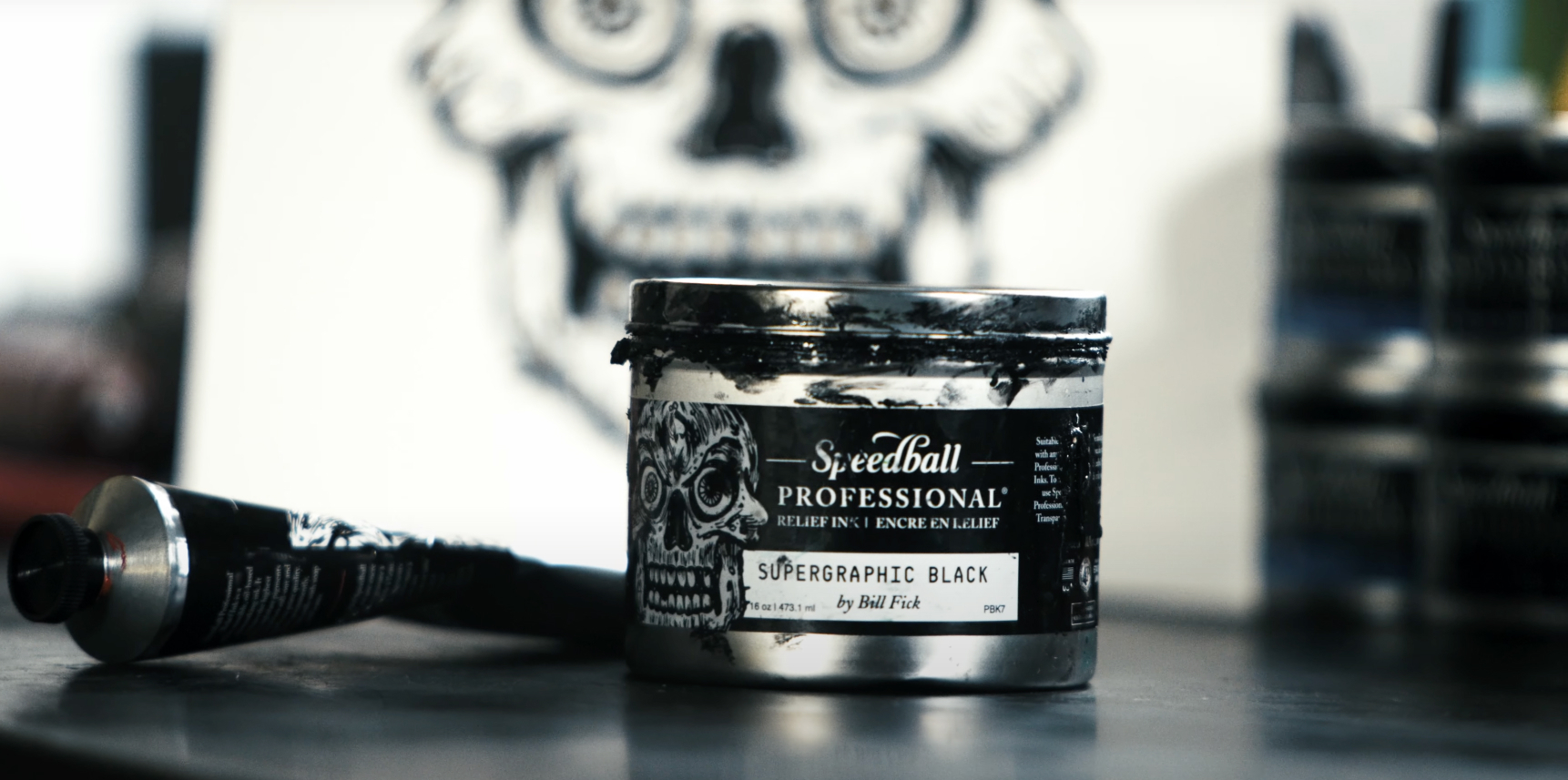 When developing Speedball Professional Relief Ink, we wanted to be sure we dialed in every facet of its working properties to meet the demands of any pro's studio and had the honor of collaborating with world-renowned, Outlaw printmaker, Bill Fick, to do just that. With Bill's expertise, we were able to land on a formulation that offered all the performance qualities of an oil-based ink, but with a far more hassle-free clean-up. The line’s flagship color, Supergraphic Black, is named after Bill’s studio in Durham, NC.